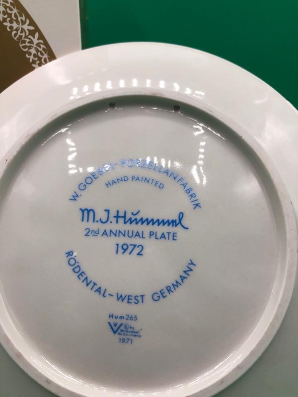 1972 M.J. Hummel Collector's Plate. 2nd edition annual plate. Good Condition. Comes in original box.