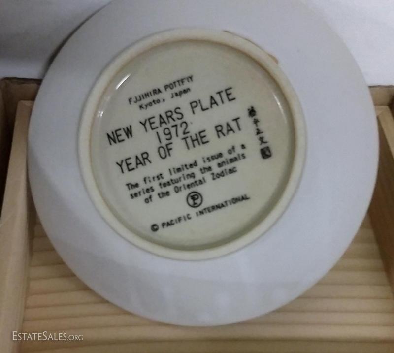 Manju do Kyoto Manju do Pacific International Japan-1972 Limited Edition Year of the Rat Plate Blue-1st edition. In original wood crate