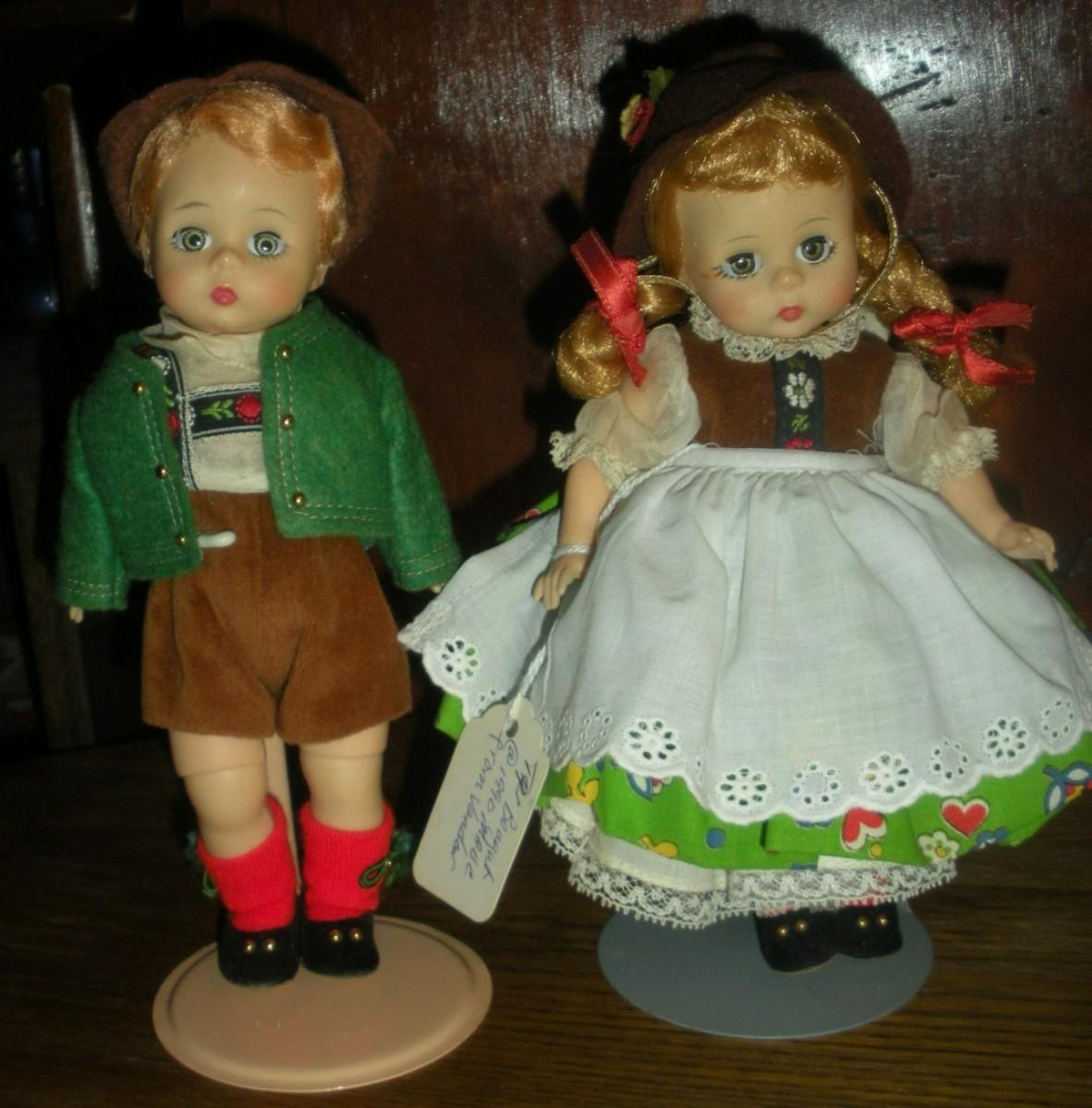 1972 Tyrolean Boy and Girl Madame Alexander 8" dolls. Bend Knee
