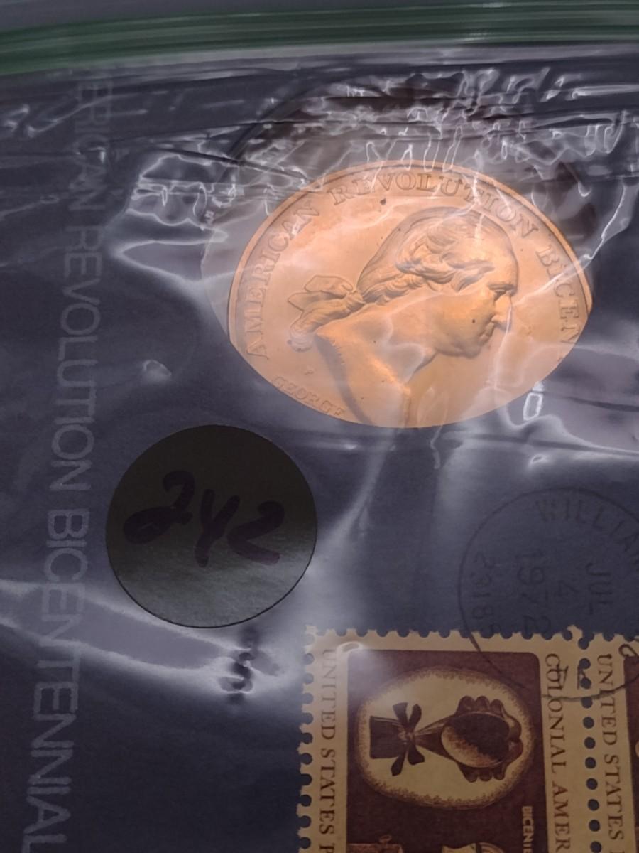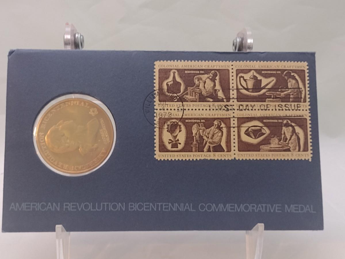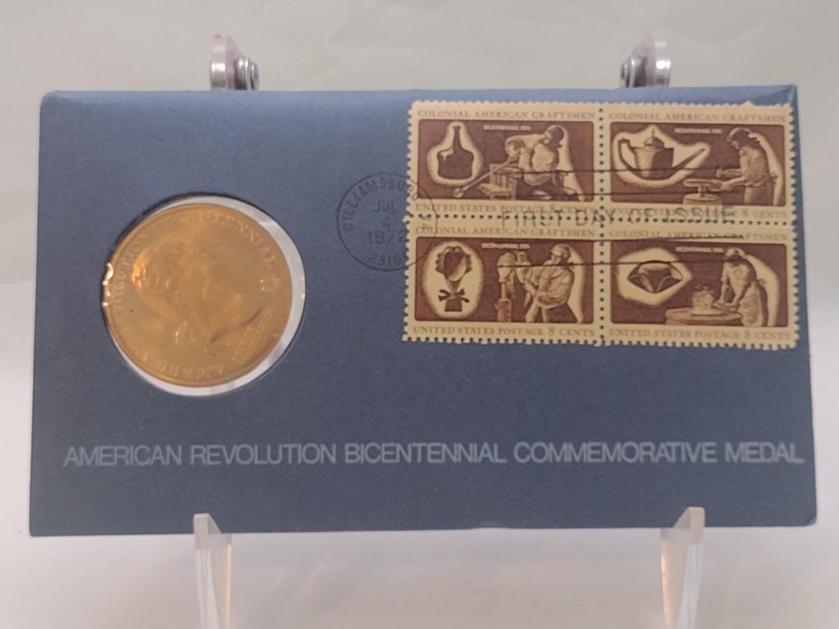 1972 U. S. Mint American Revolution Bicentennial Commemorative Medal and First Issue Stamp (#242)