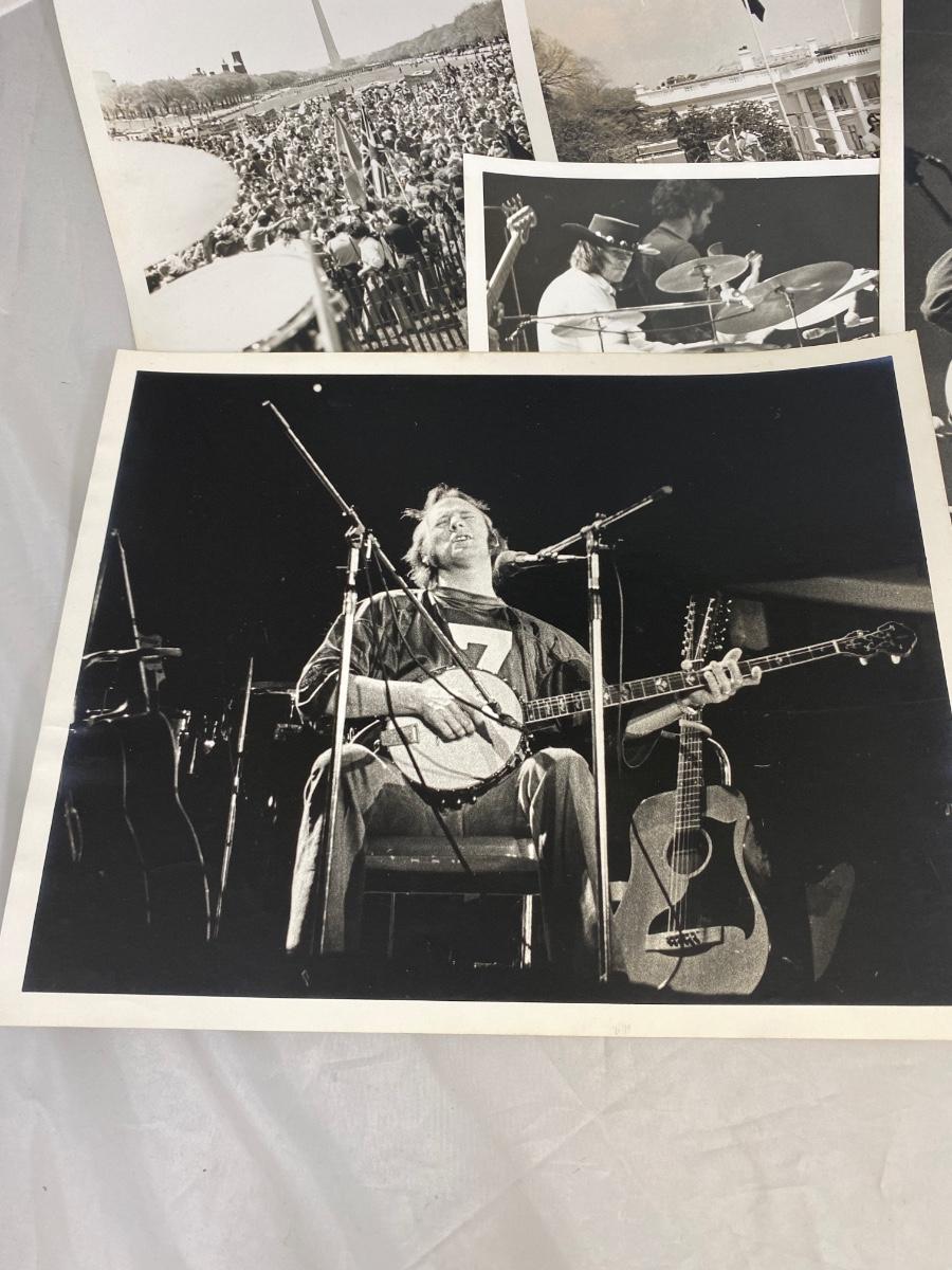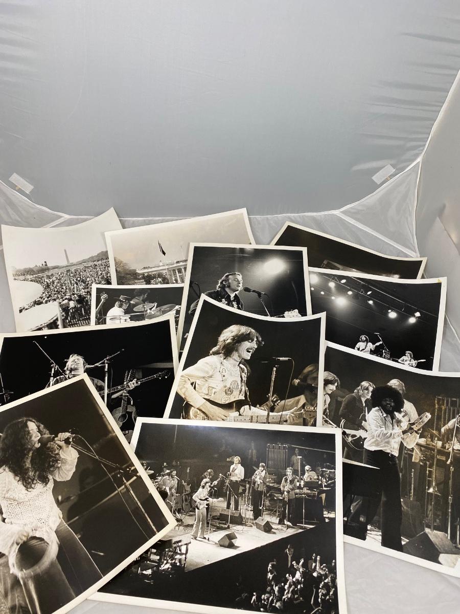 Rare 1973 1974 black and white photos from an amateur photographer at The Spectrum, Philadelphia, PA of famous musicians. Photos of George Harrison, Billy Preston, Steve Stills, New Riders of the Purple Sage, and Maria Mauldaur. Photographer was a student at Penn State during those years. There are a couple added photos from Washington DC of a gathering as well.