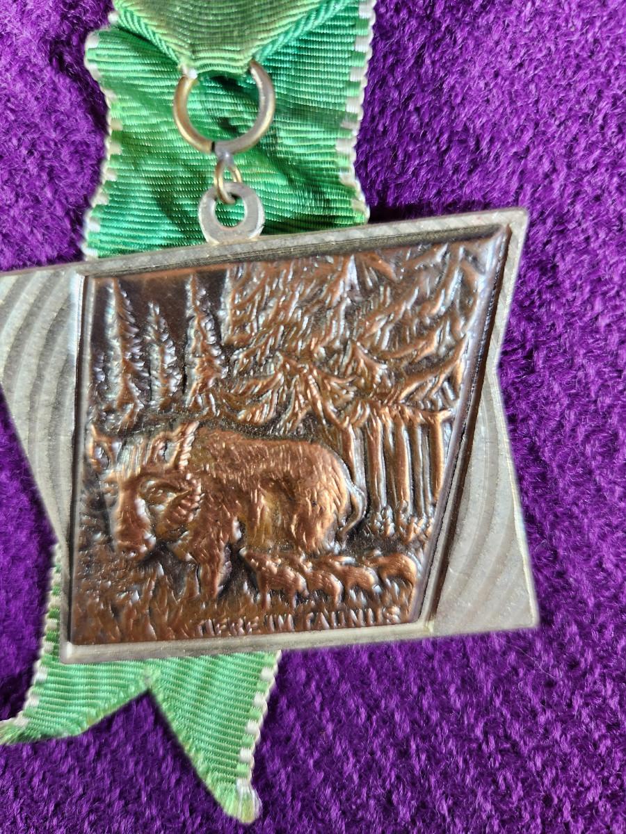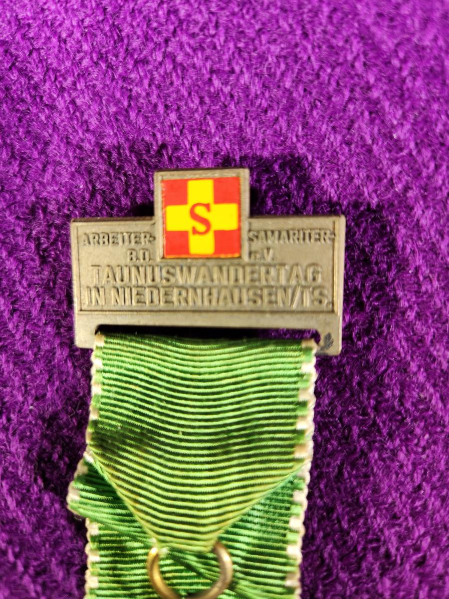 Volksmarching (from German "Volksmarsch", people's march) is a form of non-competitive fitness walking that developed in Europe in the mid-late 1960s. By 1968, the International Federation of Popular Sports (better known as the "IVV") was formed by Germany, Austria, Liechtenstein and Switzerland. A volksmarch is essentially a more formalized version of a hike, in which participants check in at the start and proceed along a prescribed route“”usually ten kilometers, or 6.2 miles. This medal is from the estate of a life-long military family who were stationed for many years in German. See photos for size and details.