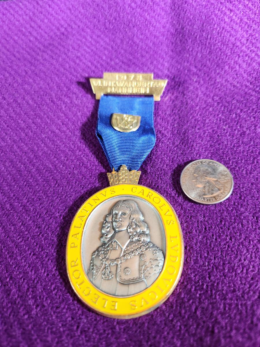 Volksmarching (from German "Volksmarsch", people's march) is a form of non-competitive fitness walking that developed in Europe in the mid-late 1960s. By 1968, the International Federation of Popular Sports (better known as the "IVV") was formed by Germany, Austria, Liechtenstein and Switzerland. A volksmarch is essentially a more formalized version of a hike, in which participants check in at the start and proceed along a prescribed route“”usually ten kilometers, or 6.2 miles. This medal is from the estate of a life-long military family who were stationed for many years in German. See photos for size and details.