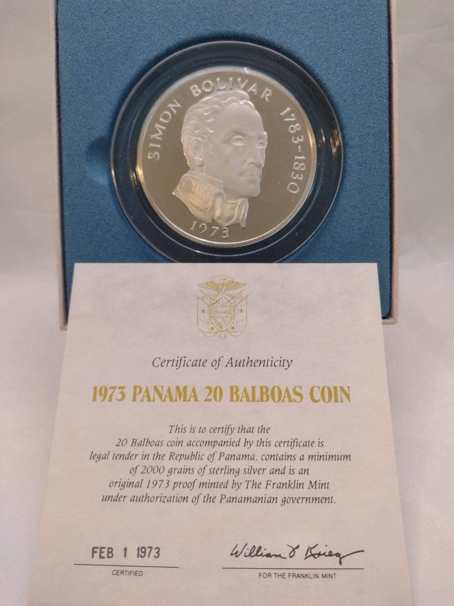 1973 Panama 20 Balboas 2000 Grain Sterling Silver .925 Proof Coin Franklin Mint with C.O.A. (#63)