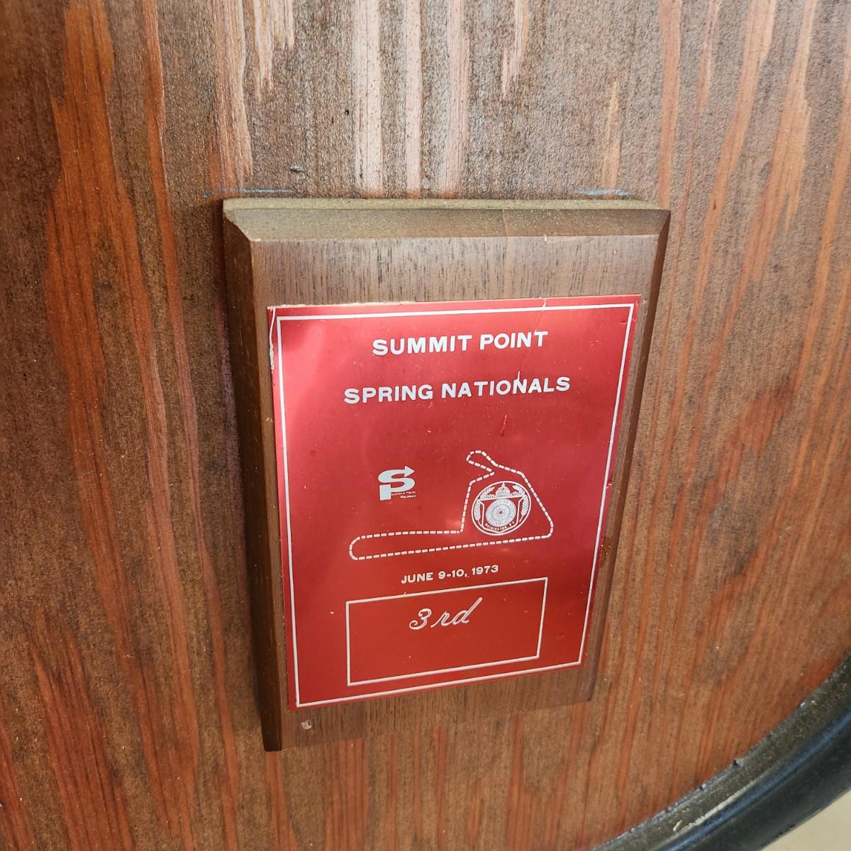1973 Summit Point Spring Nationals Award with Vintage Goodyear Racing Tire