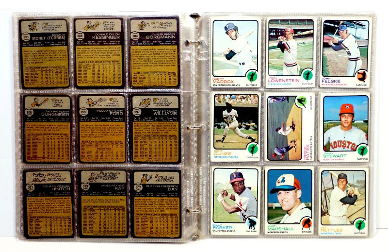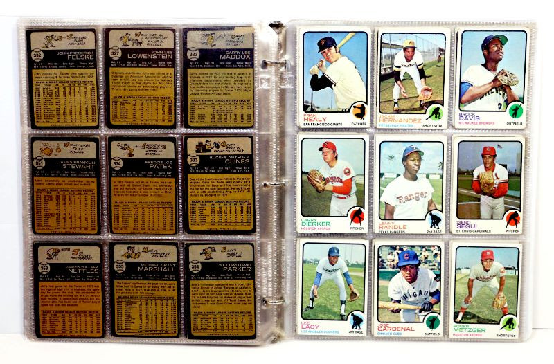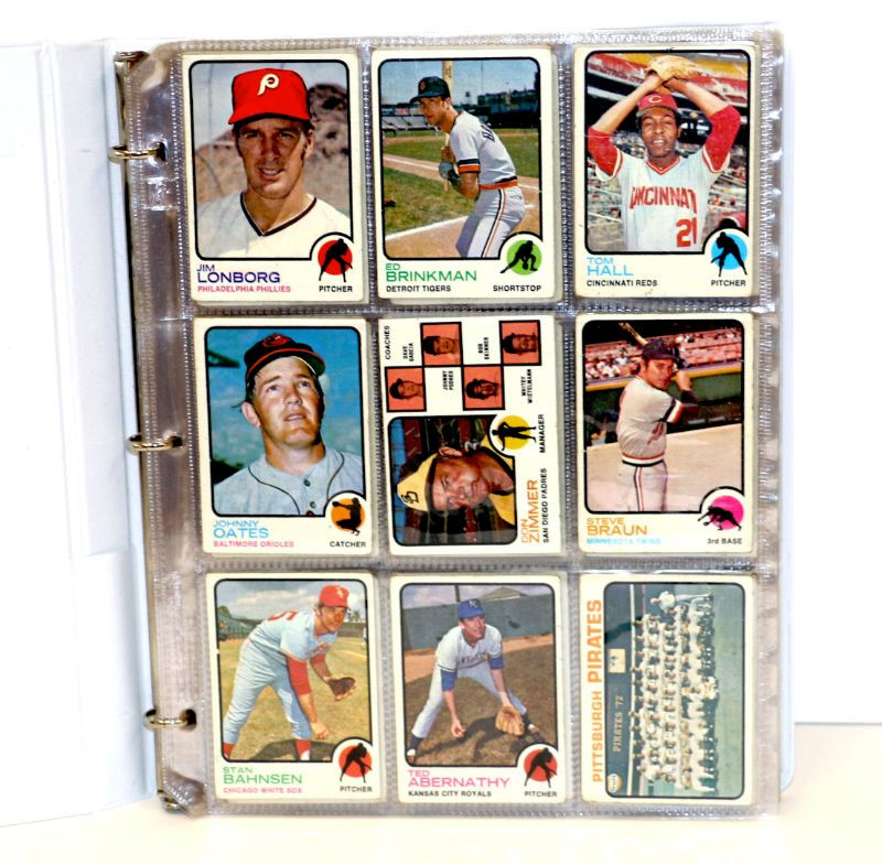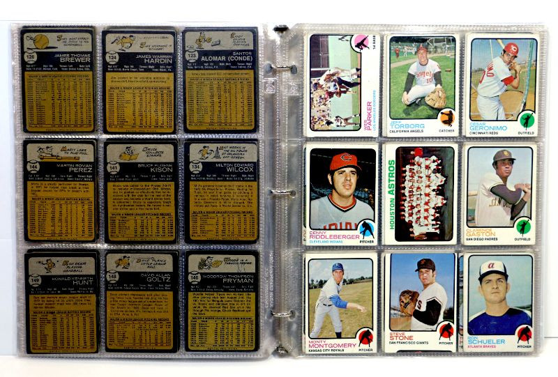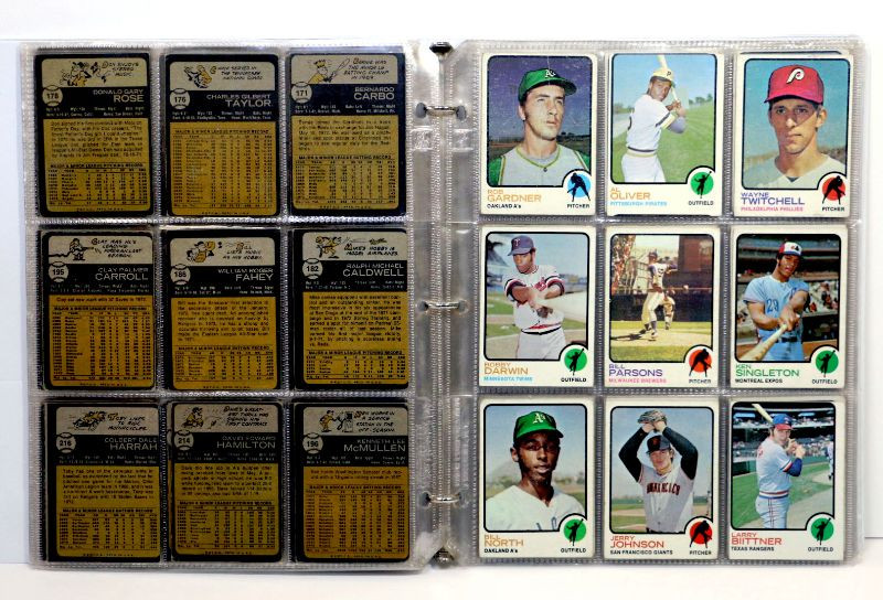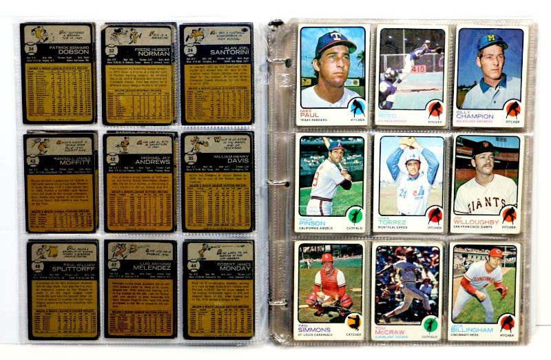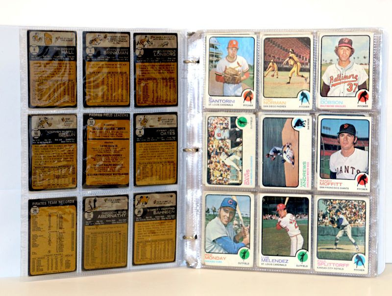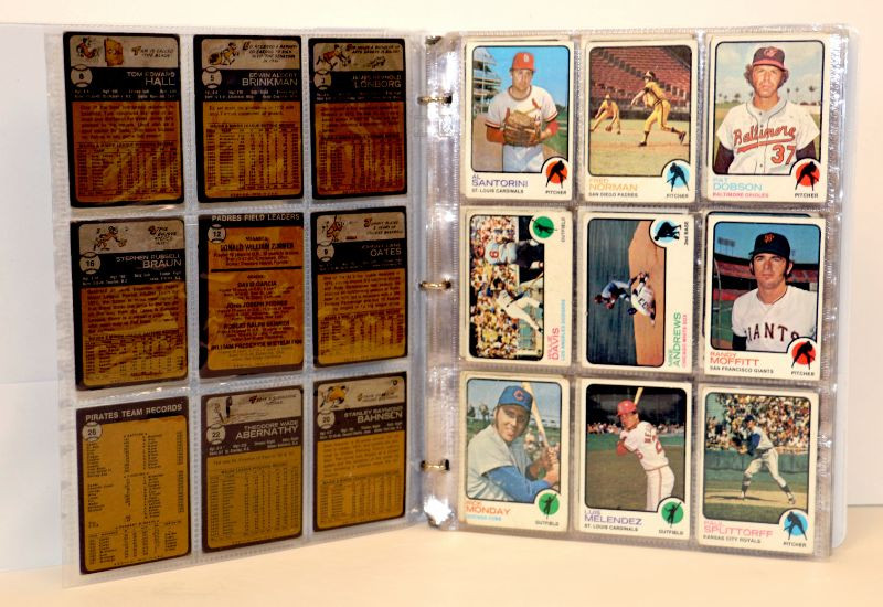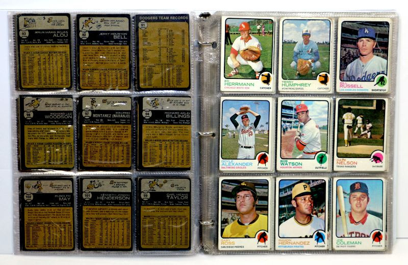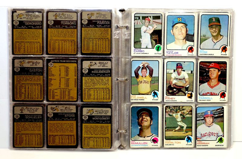 Collection of baseball cards in album - 1973 Topps, 144 cards in total, as seen on pictures