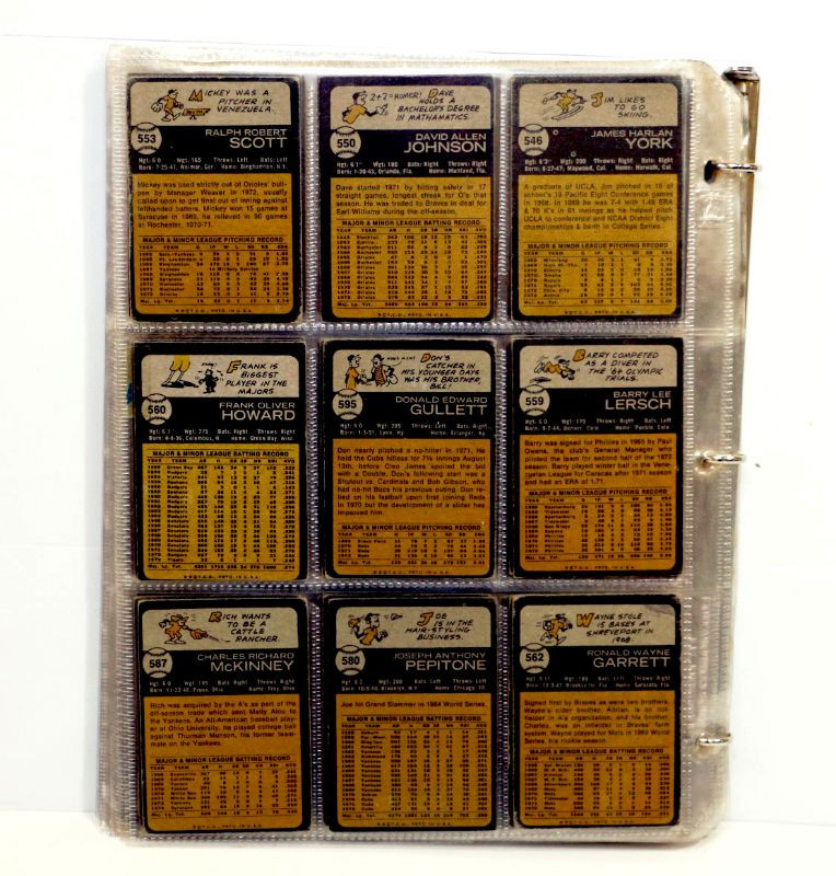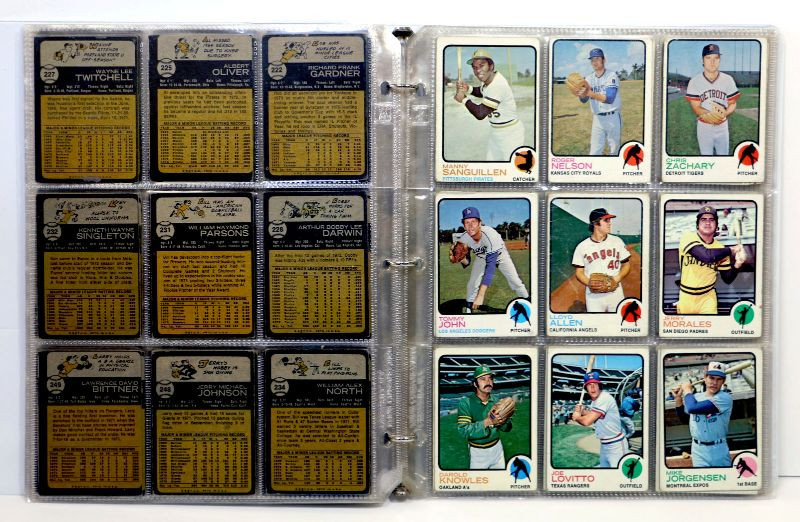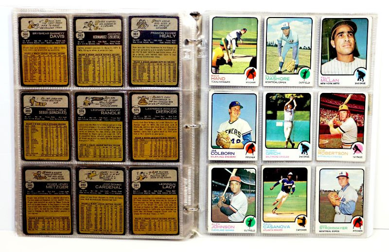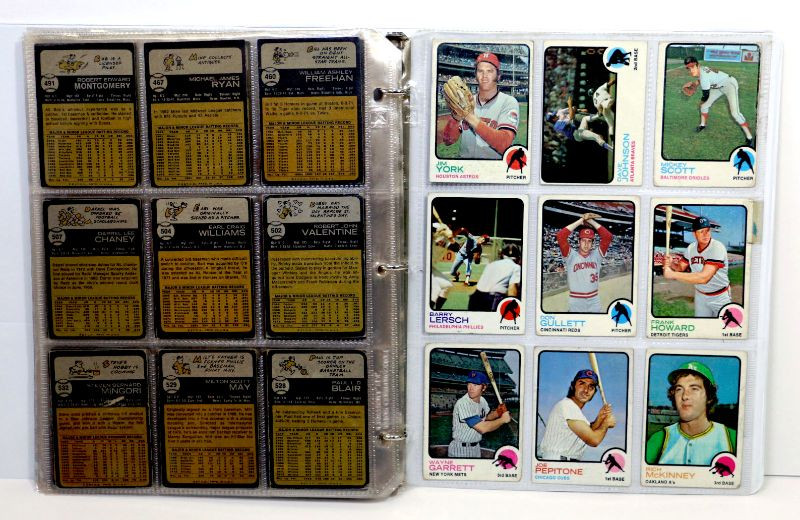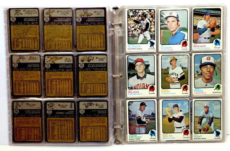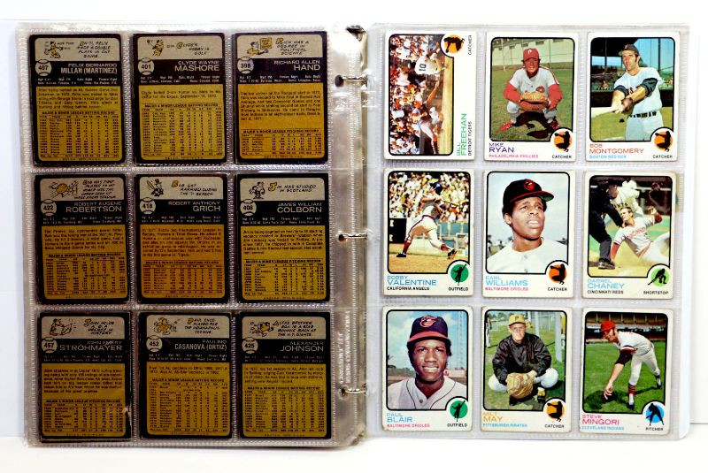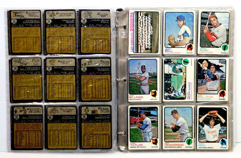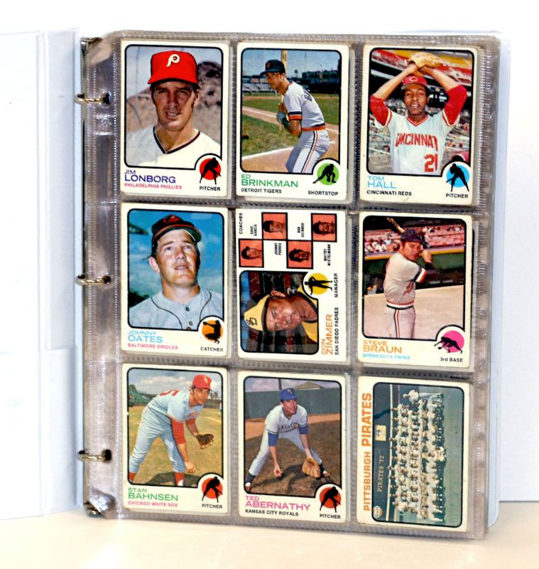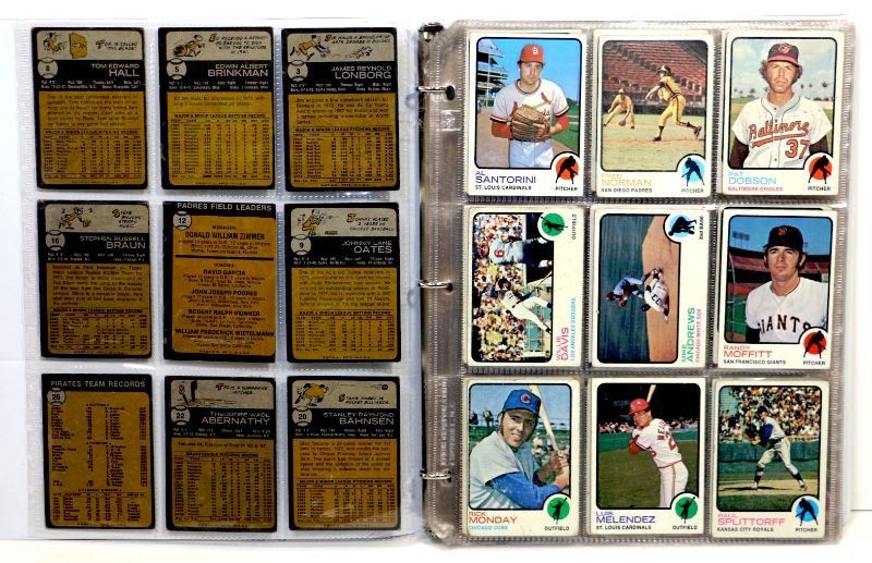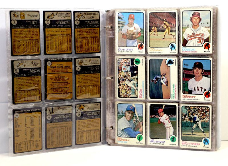 Collection of baseball cards in album - 1973 Topps, 144 cards in total, as seen on pictures
