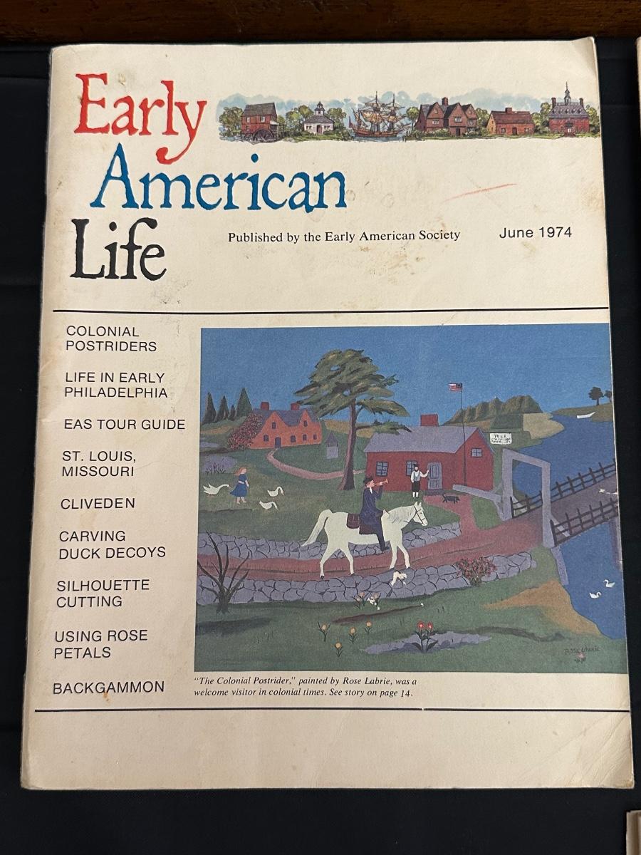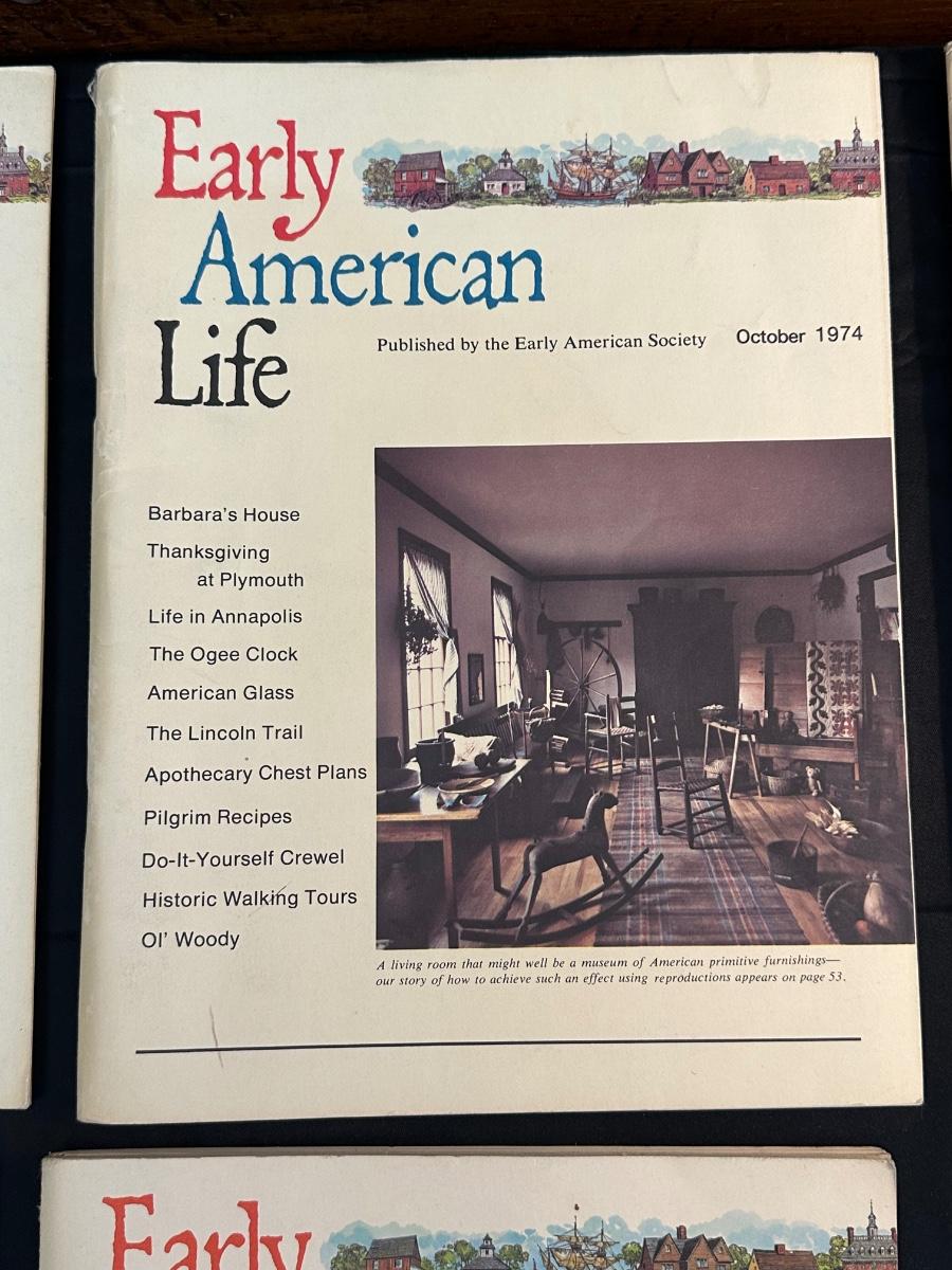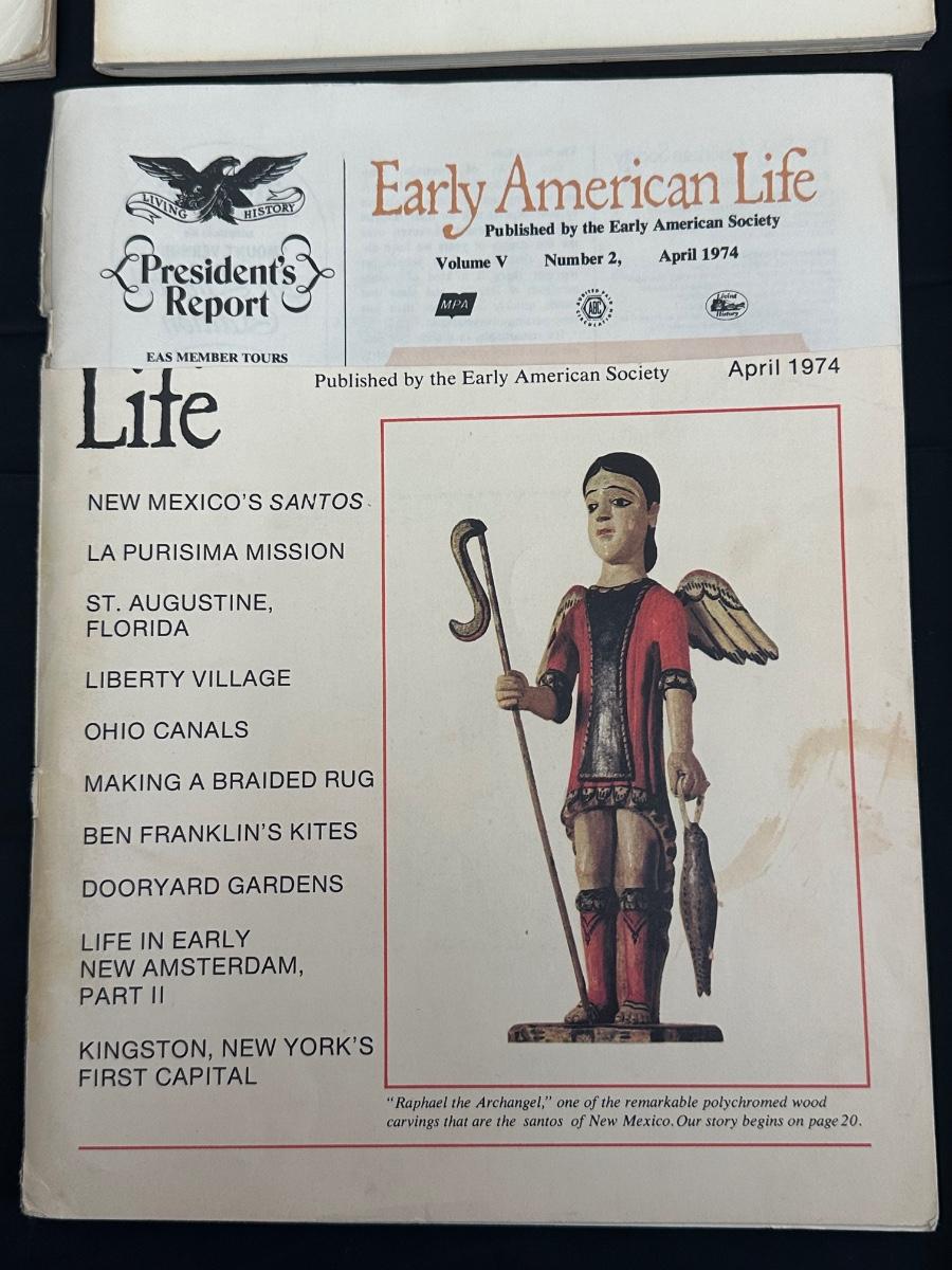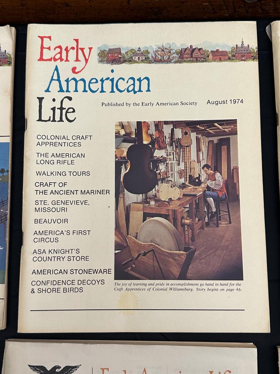 6 Magazines total — topics include but are not limited to The American Long Rifle, American Stoneware, Pilgrim Recipes, St. Augustine and The Art of Spinning.