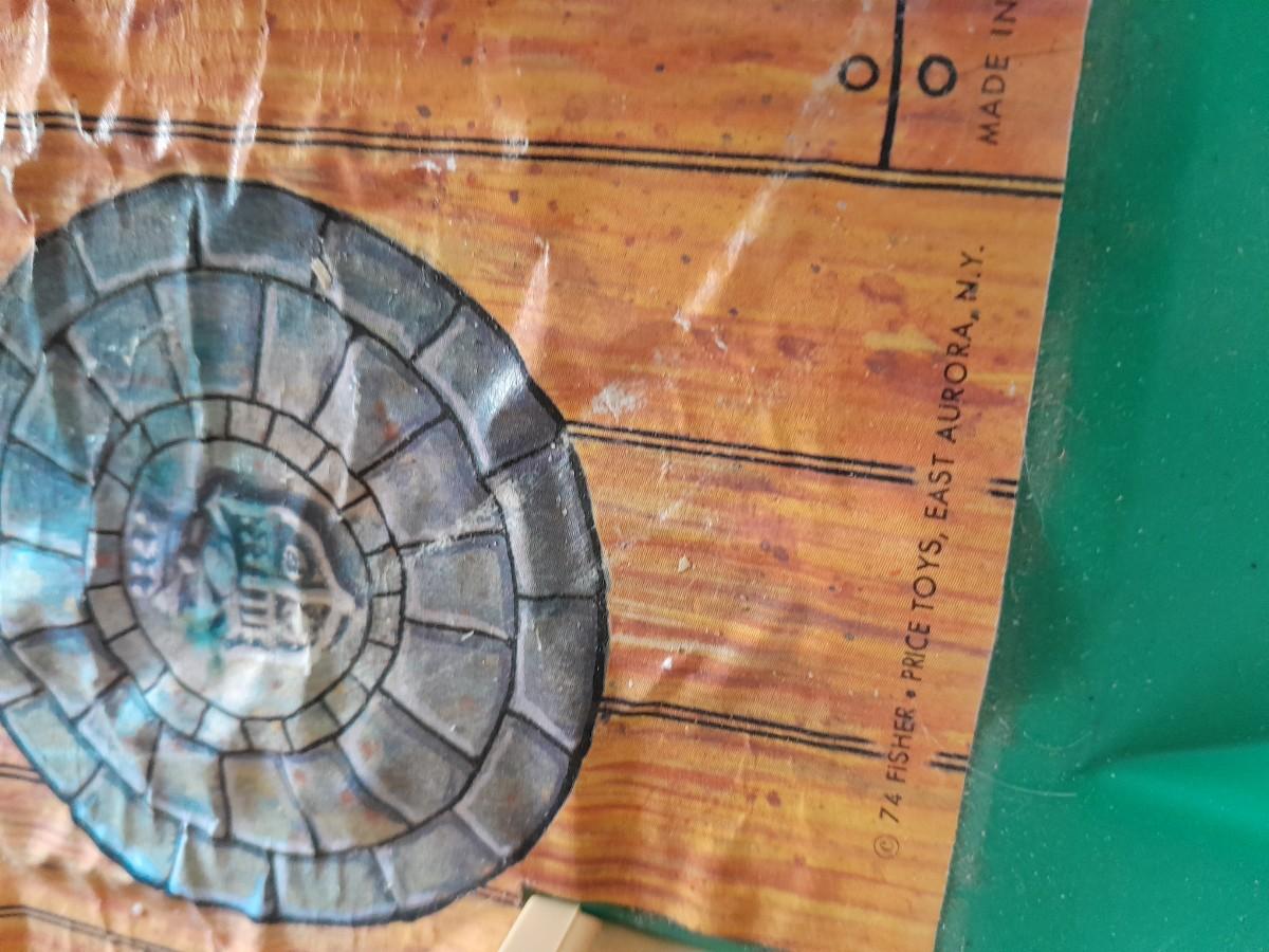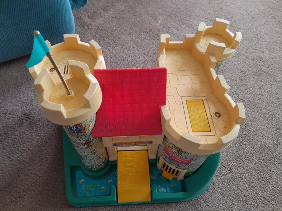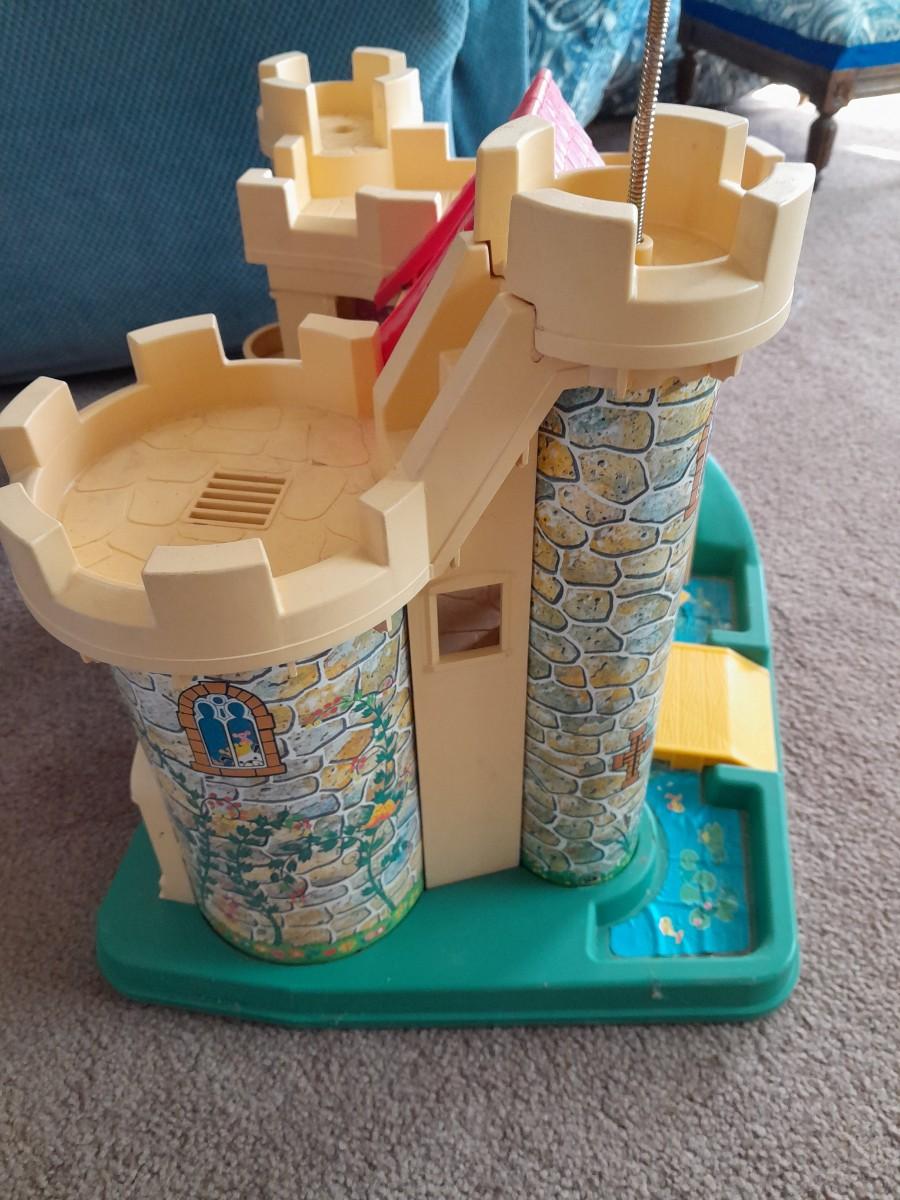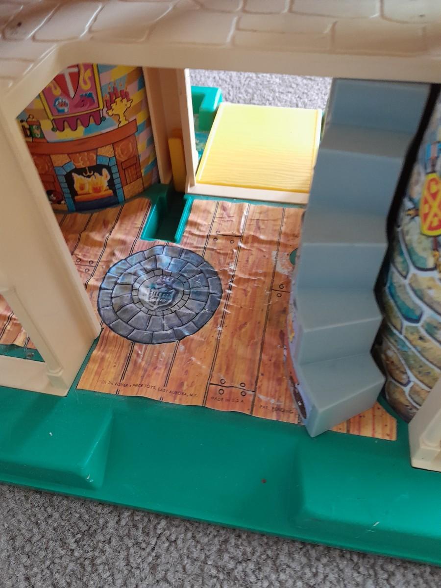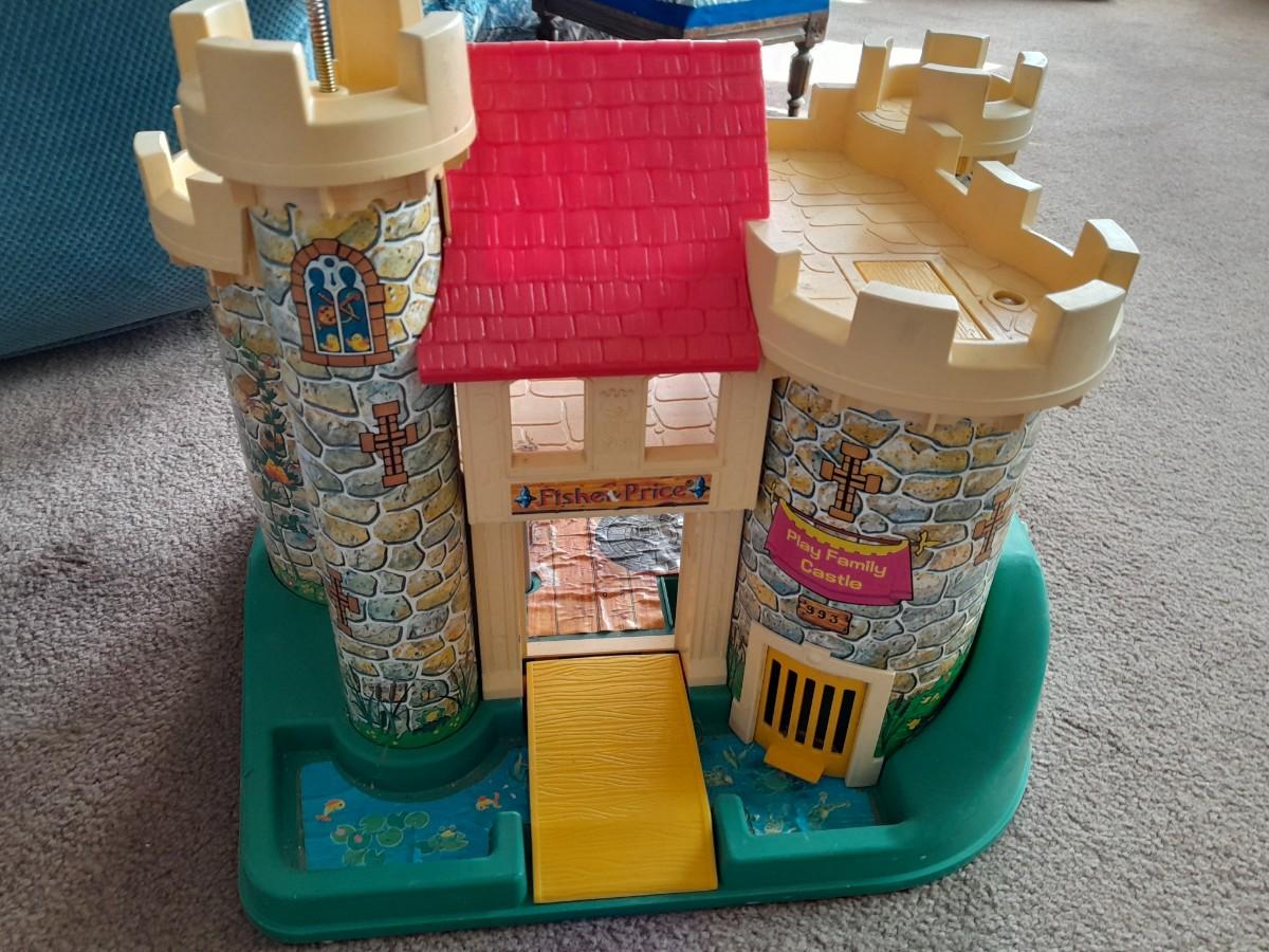 1974 FISHER PRICE PLAY CASTLE 993 WITH FOUR VINTAGE WEEBLE LIKE CHARACTERS.