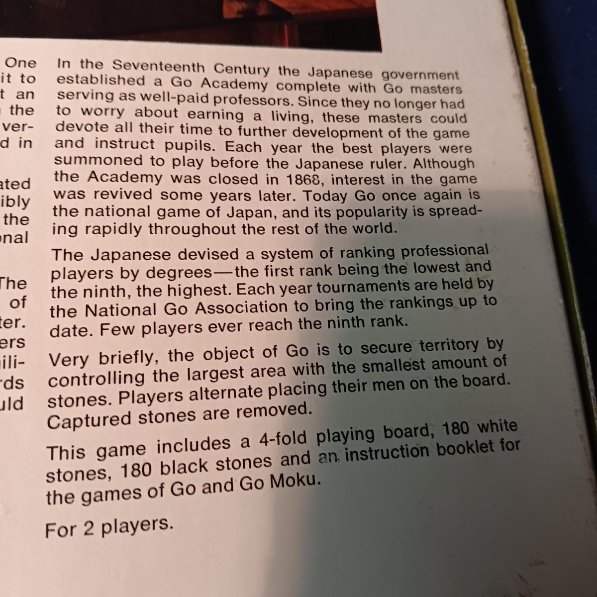 1974 "GO" THE ANCIENT ORIENTAL GAME