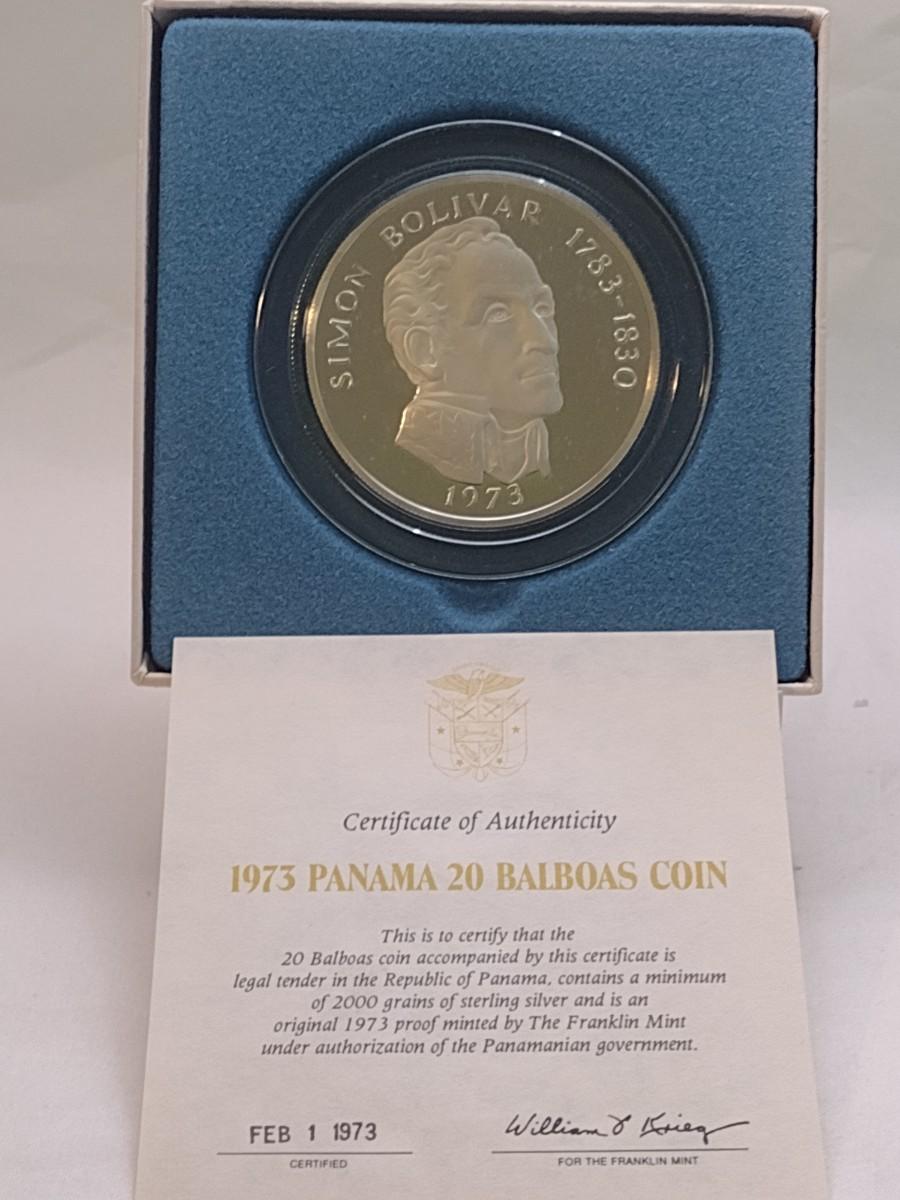 1973 Panama 20 Balboas 2000 Grain Sterling Silver .925 Coin Franklin Mint (#203)