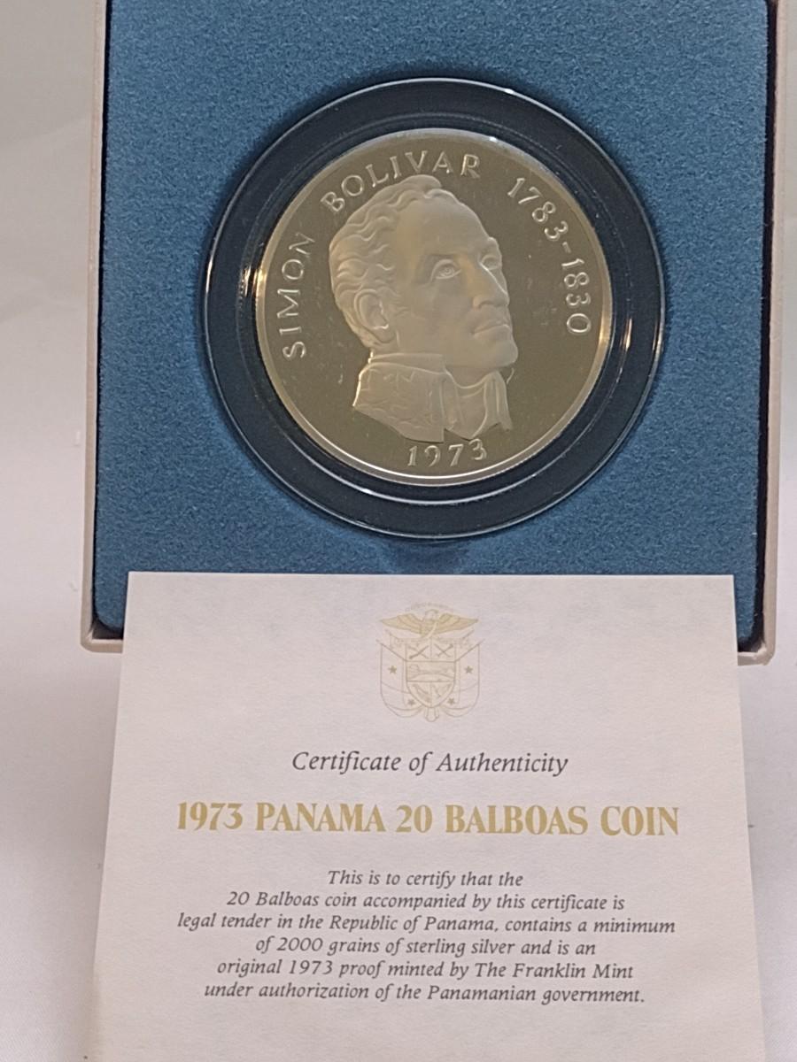 1973 Panama 20 Balboas 2000 Grain Sterling Silver .925 Coin Franklin Mint (#204)