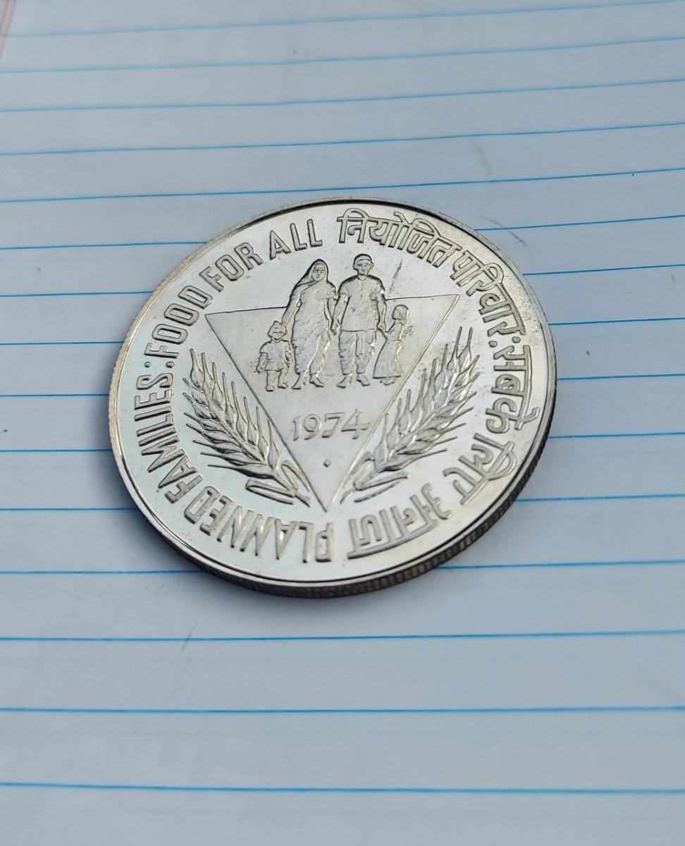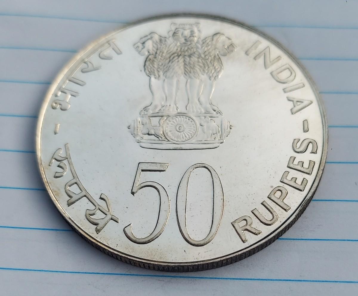 1974 PARENTHOOD INDIA SILVER 50 RUPEES COIN