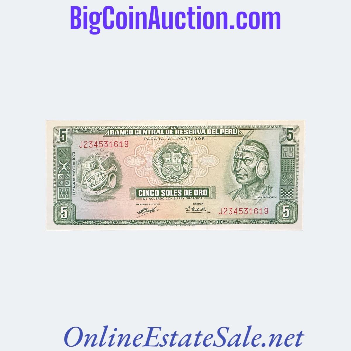 1974 PERU 5 SOLES DE ORO
