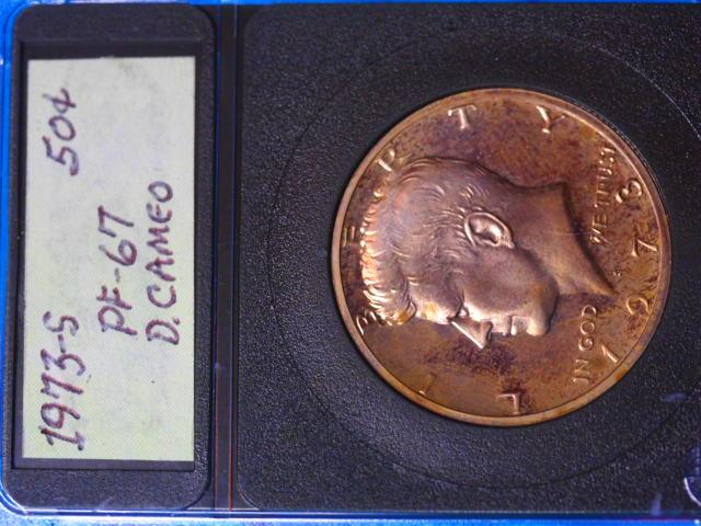 1974 S Deep Cameo Kennedy Half Graded by someone at PF 67 it is a beautiful coin and the Seller states they were Purchased from the San Francisco mint in the Capsule