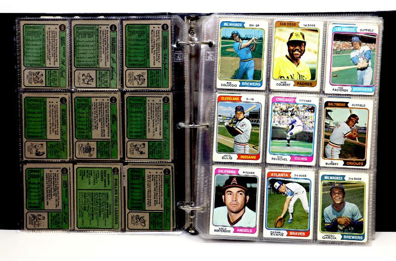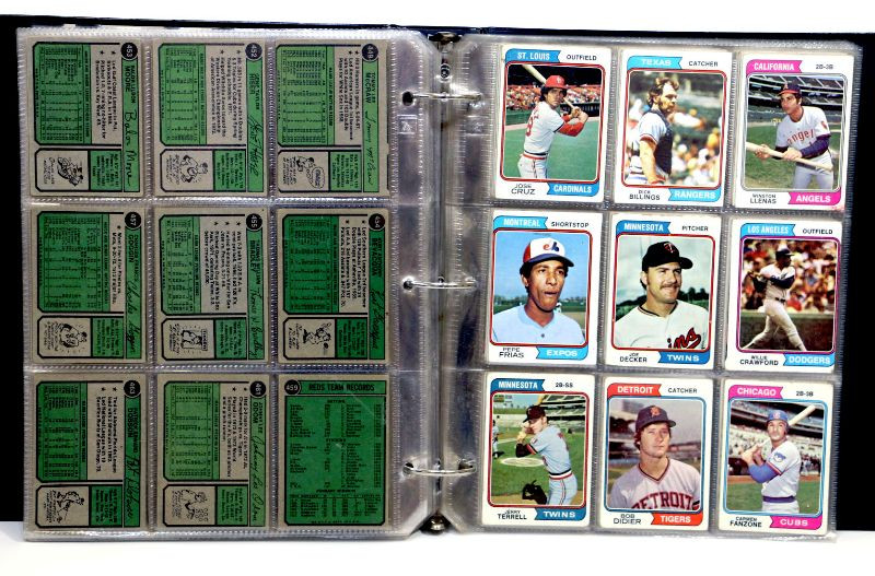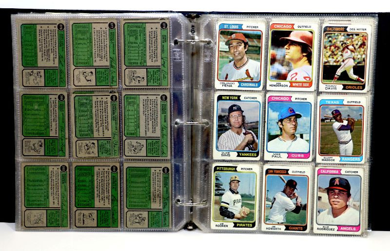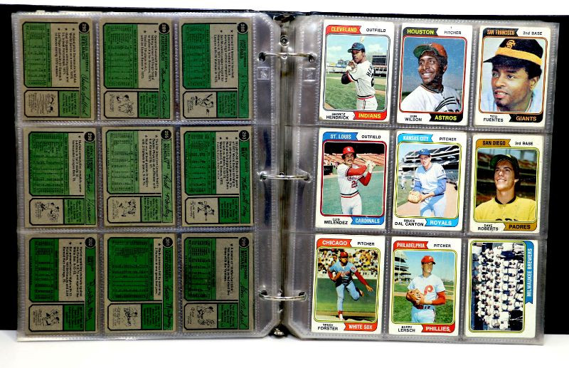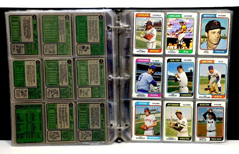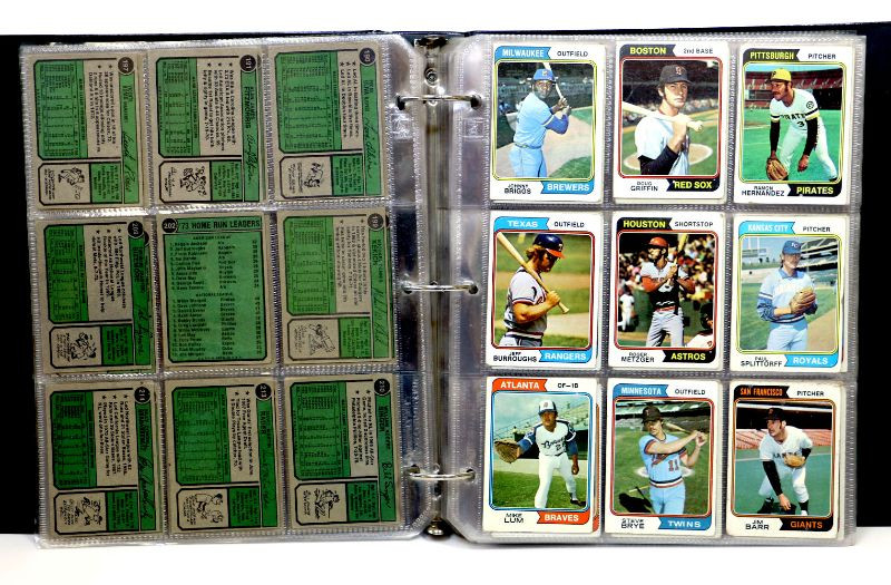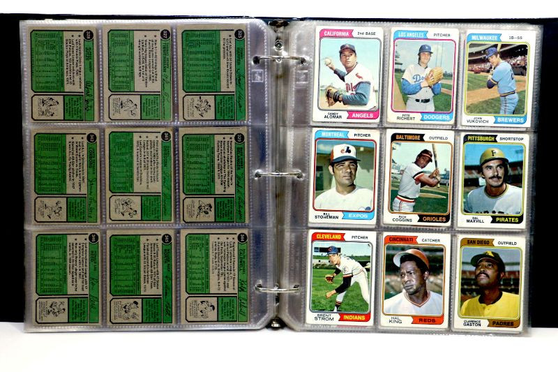 Collection of baseball cards in album - 1974 Topps, 288 cards in total, as seen on pictures