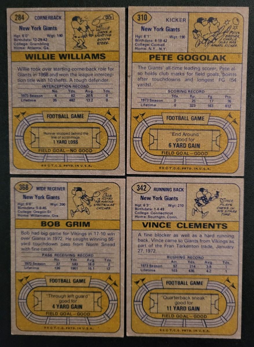 Norm Snead, Willie Williams, Tom Blanchard, John Mendenhall, Spider Lockhart, Ron Johnson, Don Goich, Pat Hughes, Greg Larson, Doug Van Horn, Pete Athas, Don Herrmann, Randy Johnson, Jim Files, Vince Clements, Bob Gim, Pete Gogolak, Jack Gregory