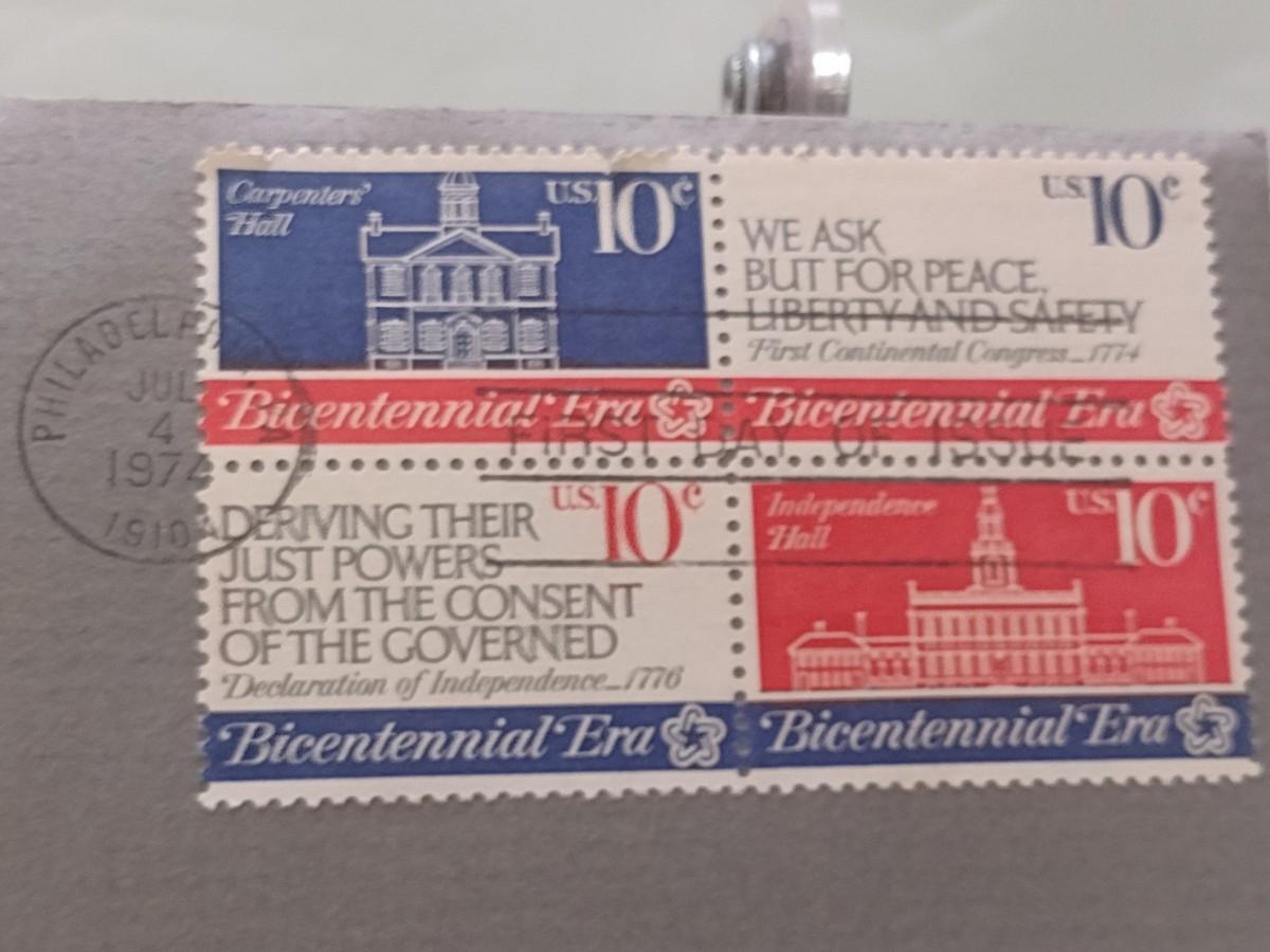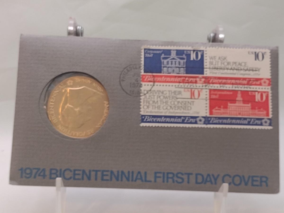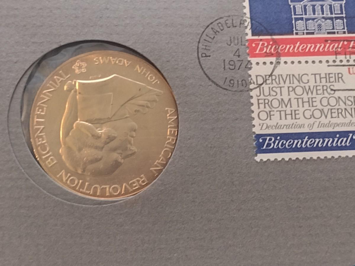 1974 U. S. Mint American Revolution Bicentennial Commemorative Medal and First Issue Stamp (#252)