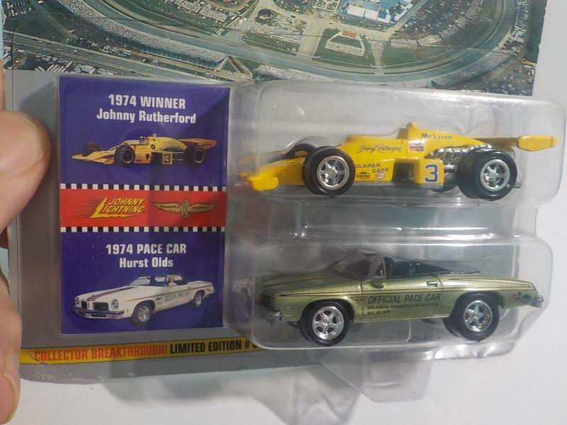 1974 winner Johnny Rutherford dragster and 74 pacer Hurst olds.