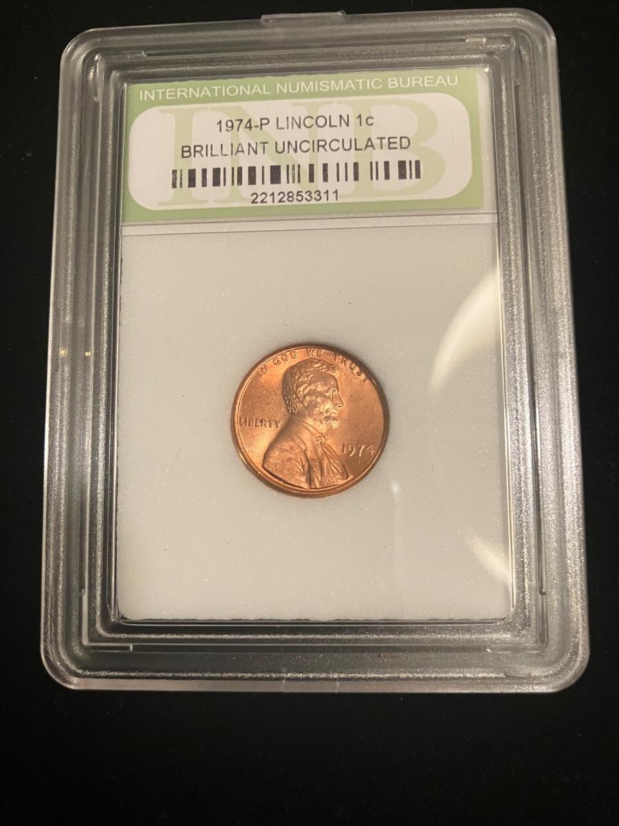 1974-P Lincoln Cent Brilliant Uncirculated - I.N.B. Slabbed - Nice Luster, Sharp Details!