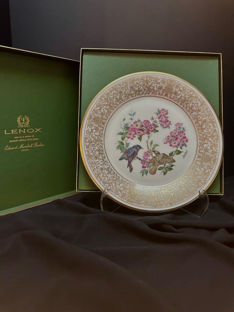 Vintage Lenox limited edition designer plate from the Boehm Bird collection series. Bone china trimmed in 24k gold, this beautiful collector’s piece is based on the artist Edward Marshall Boehm. Original box and certificate, 10 ¾”