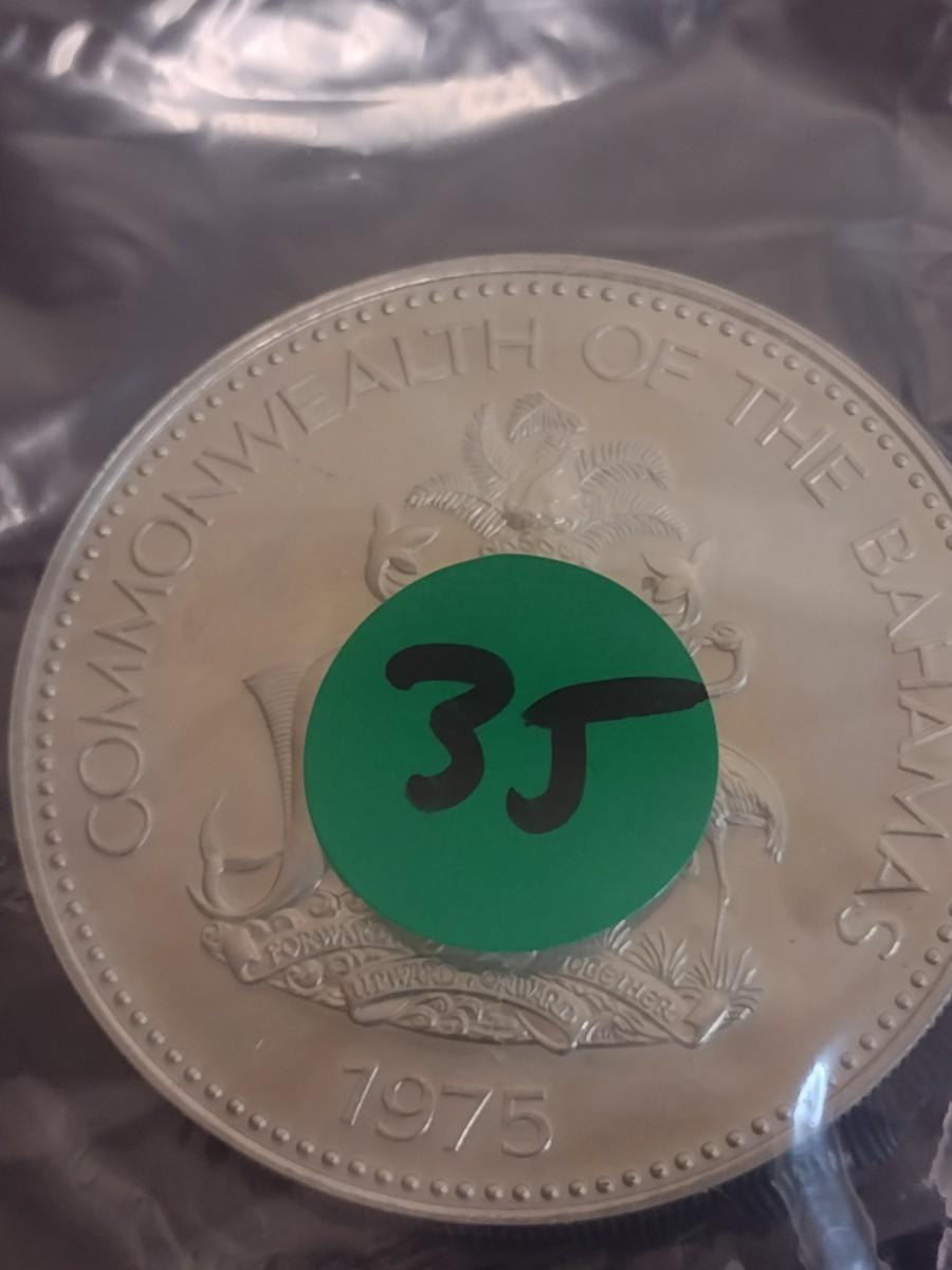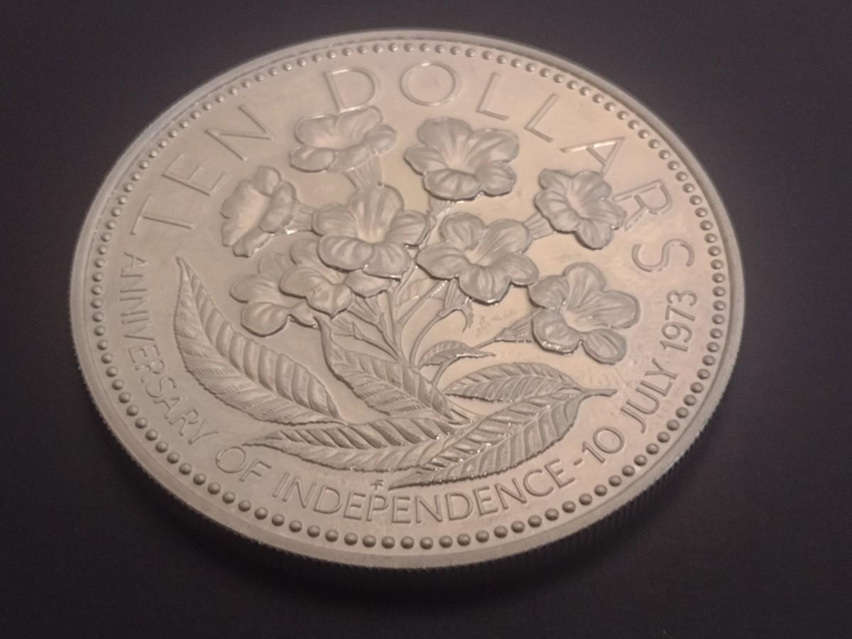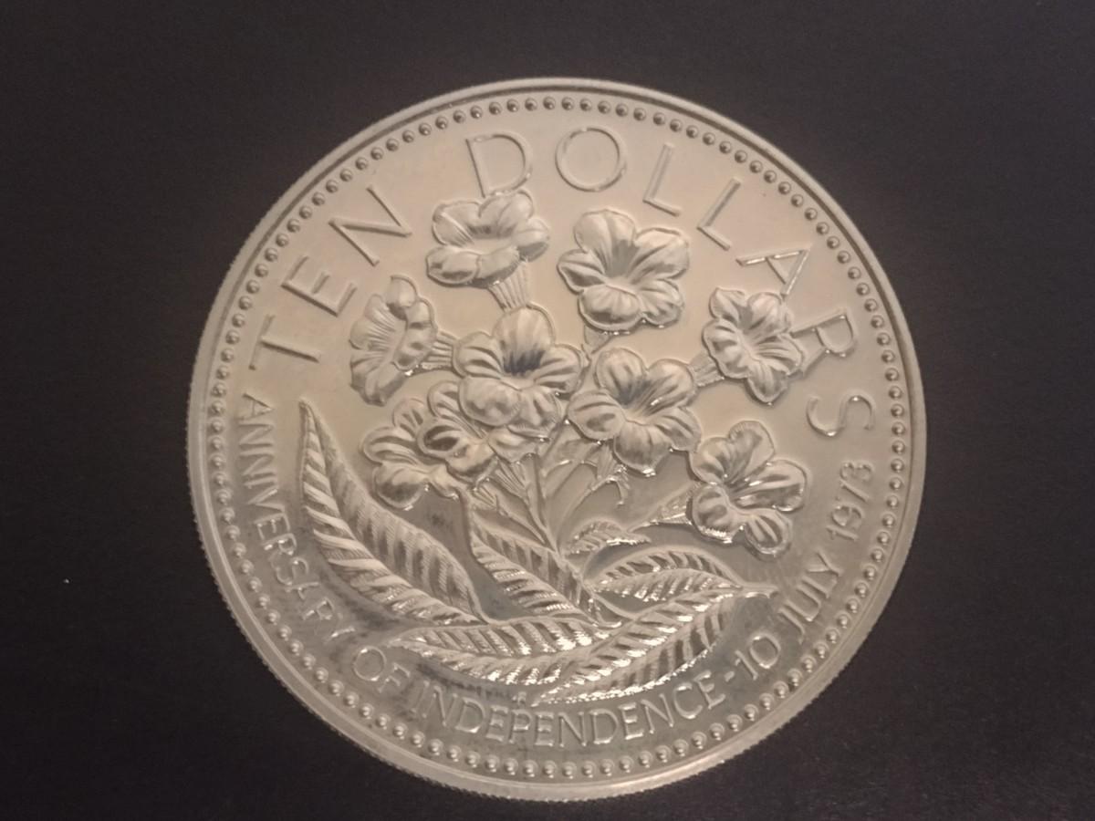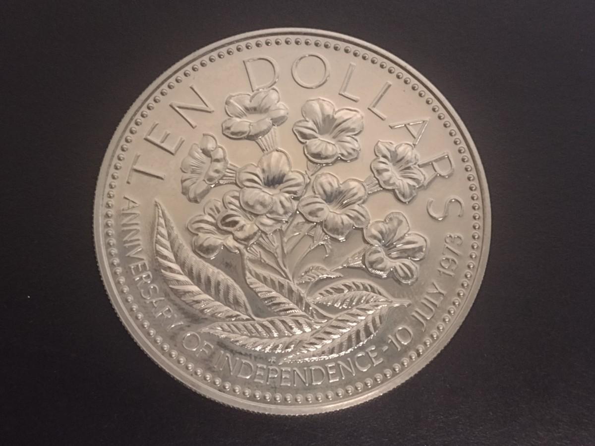 1975 Commonwealth of Bahamas Anniversary of Independance $10 Silver Coin Circulated (#35)