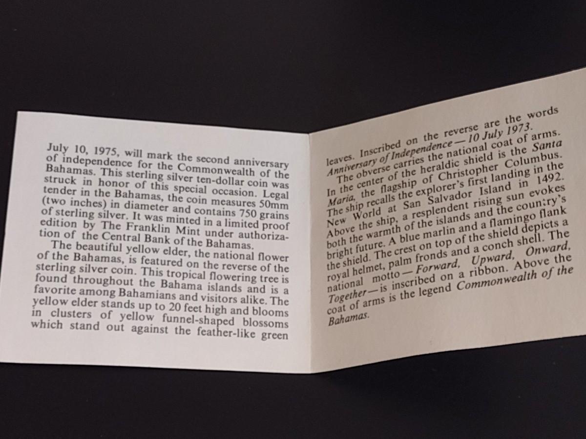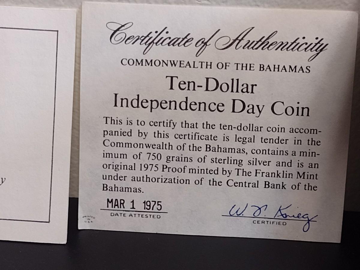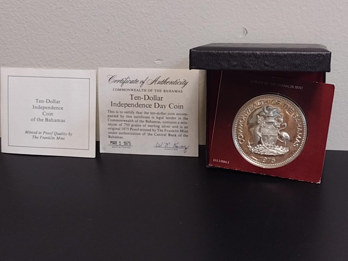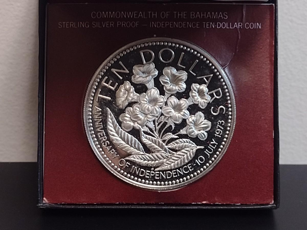 1975 Commonwealth of the Bahamas $10 Sterling Silver Proof Coin 10 July 1973 Independance 49 grams (#12)