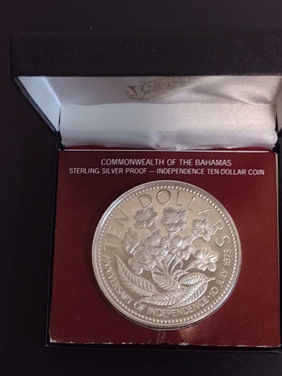1975 Commonwealth of the Bahamas $10 Sterling Silver Proof Coin 10 July 1973 Independance 49 grams (#13)