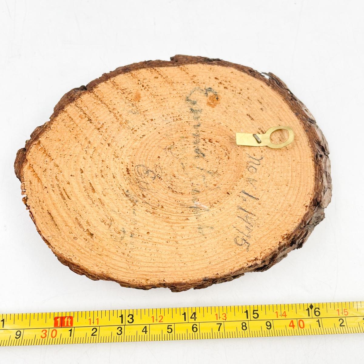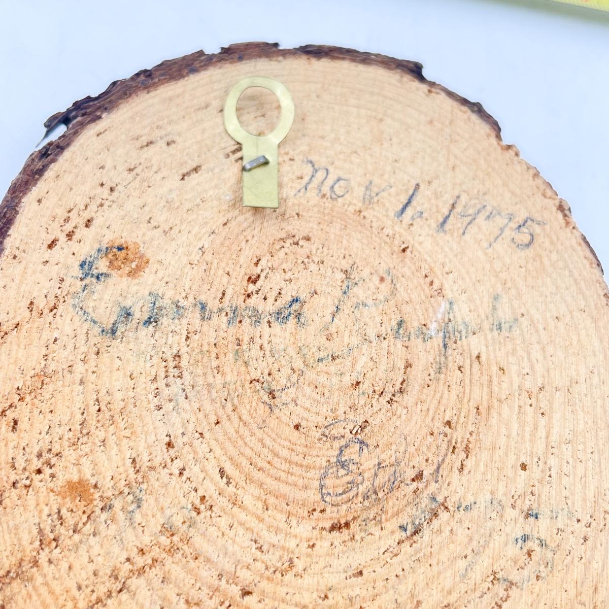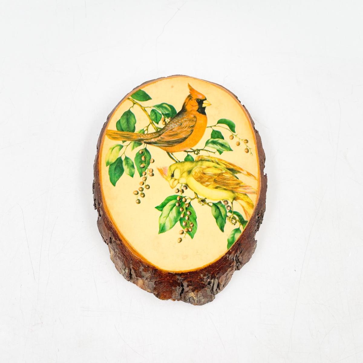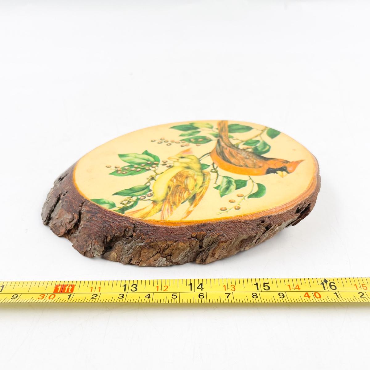 1975 DECORATIVE 6” WOOD SLICE W/ CARDINALS
