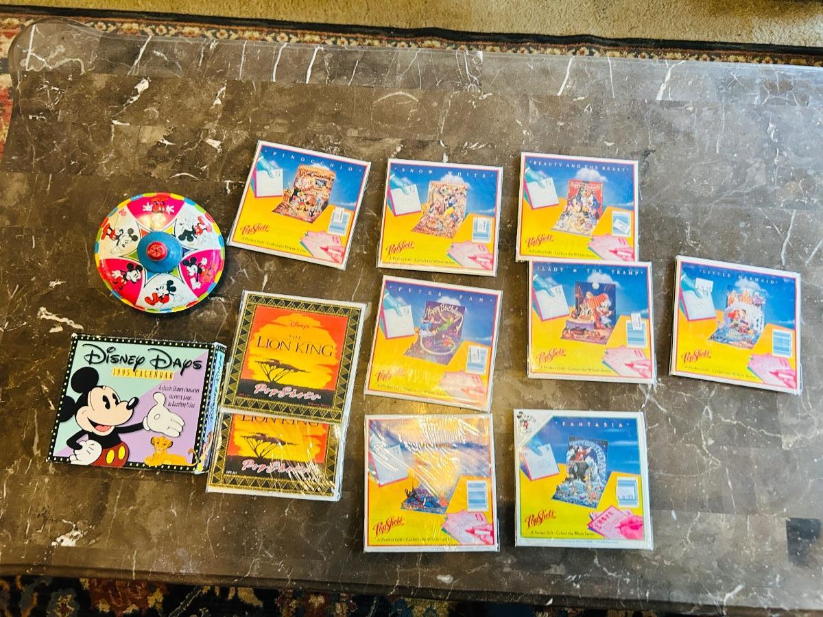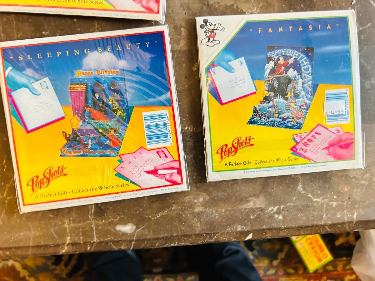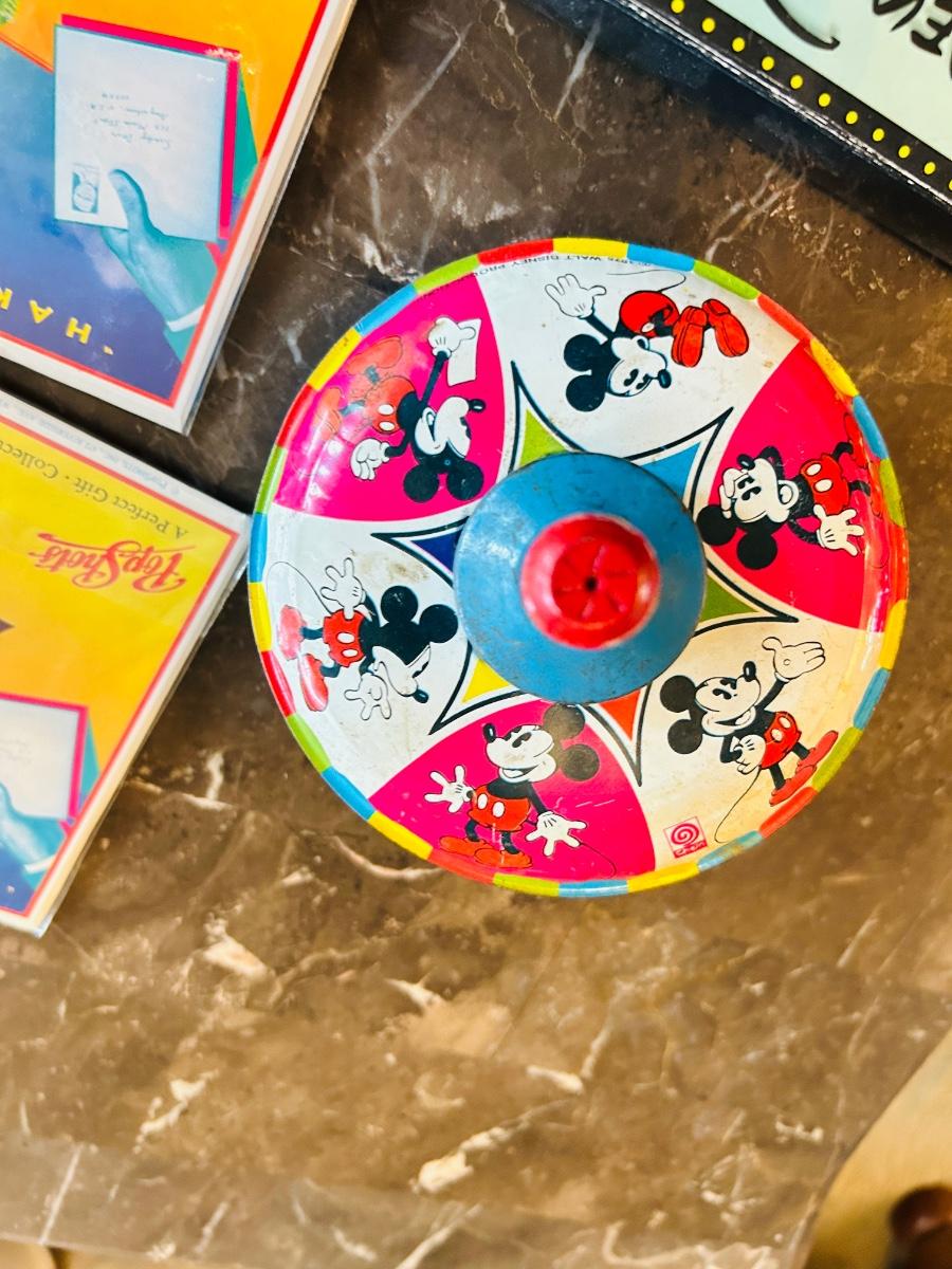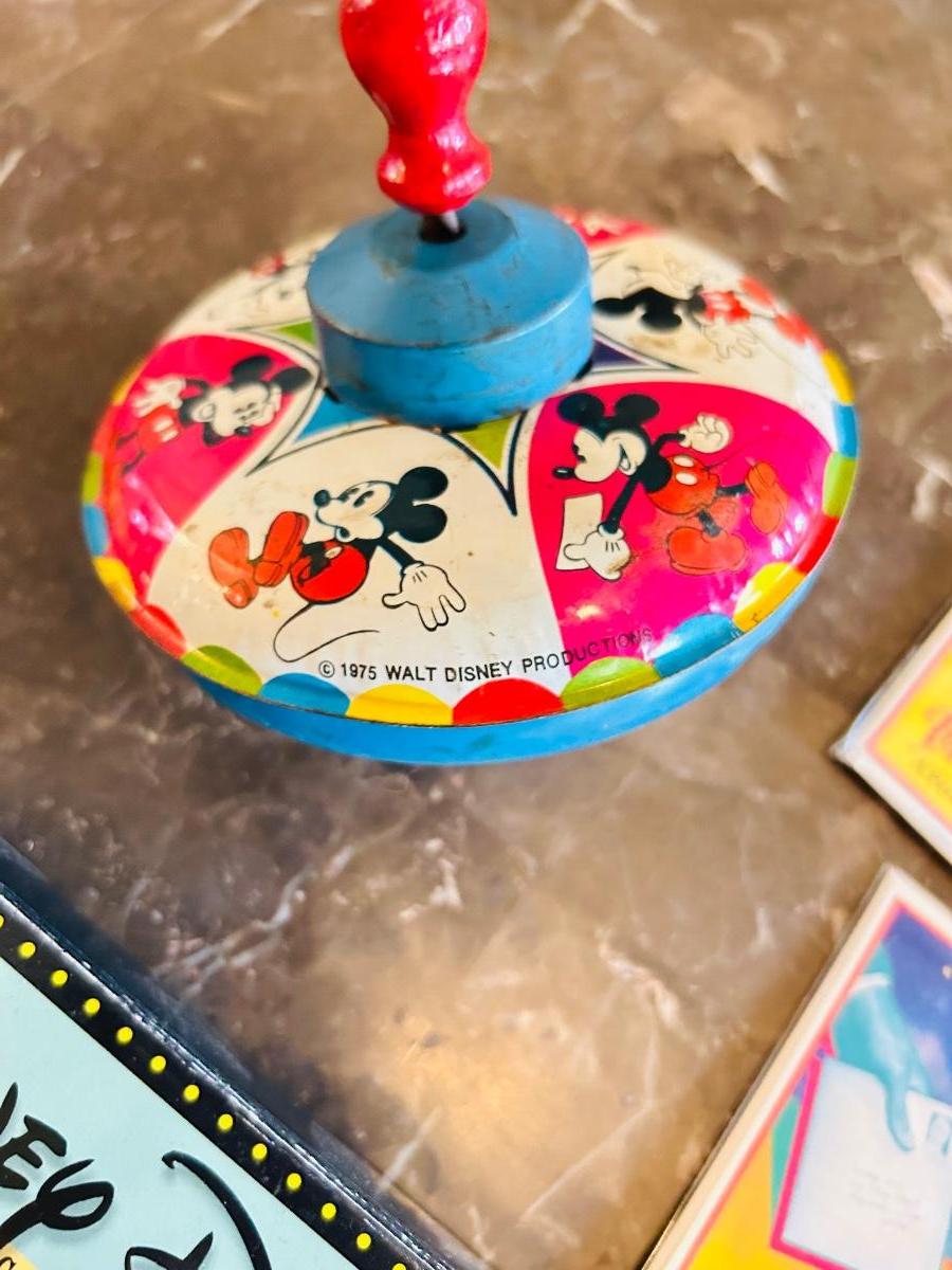 1975 MICKEY MOUSE TOP WORKS GREAT! AND ASSORTMENT OF NEAT POP UP DISNEY GREETING CARDS