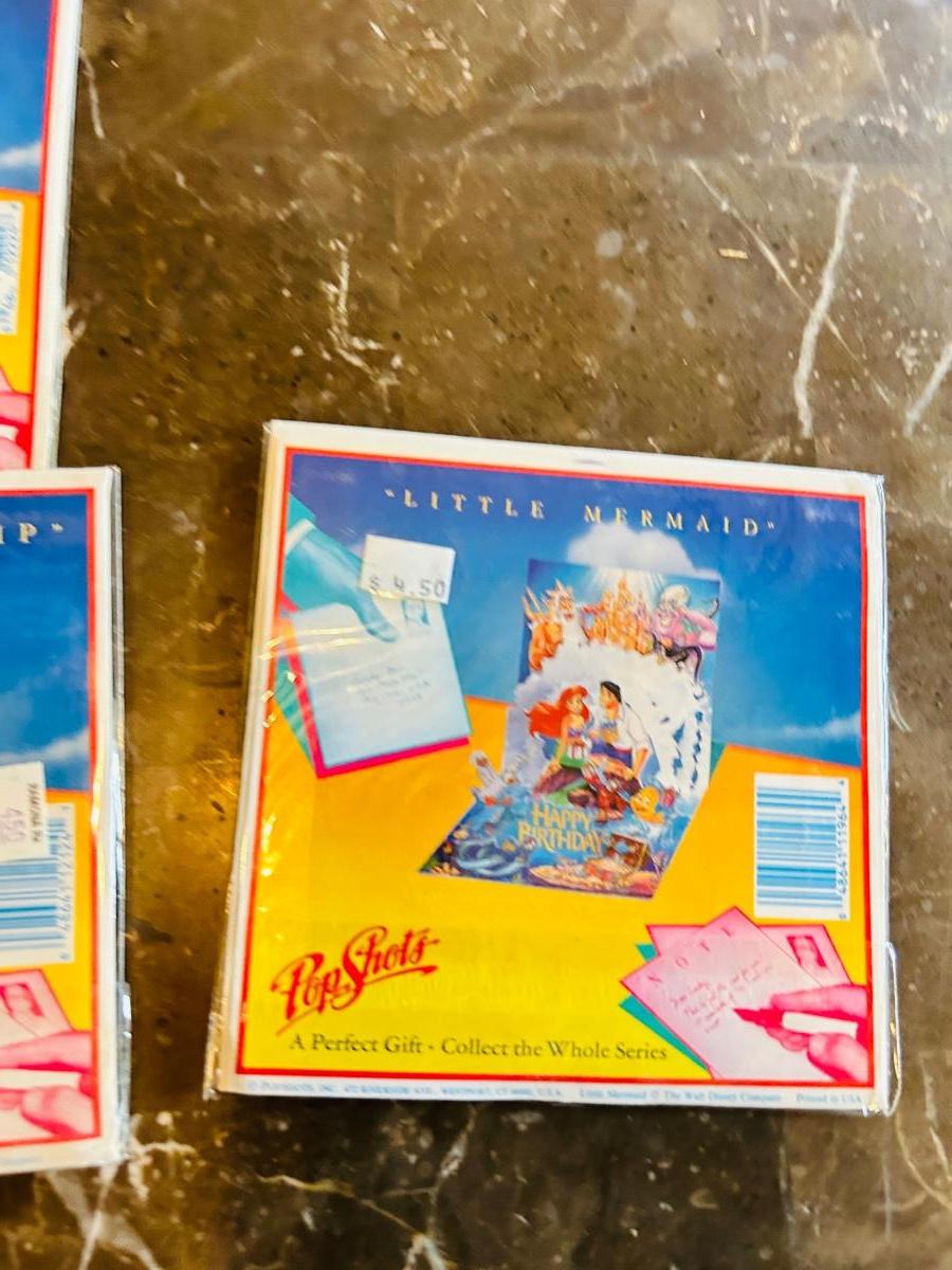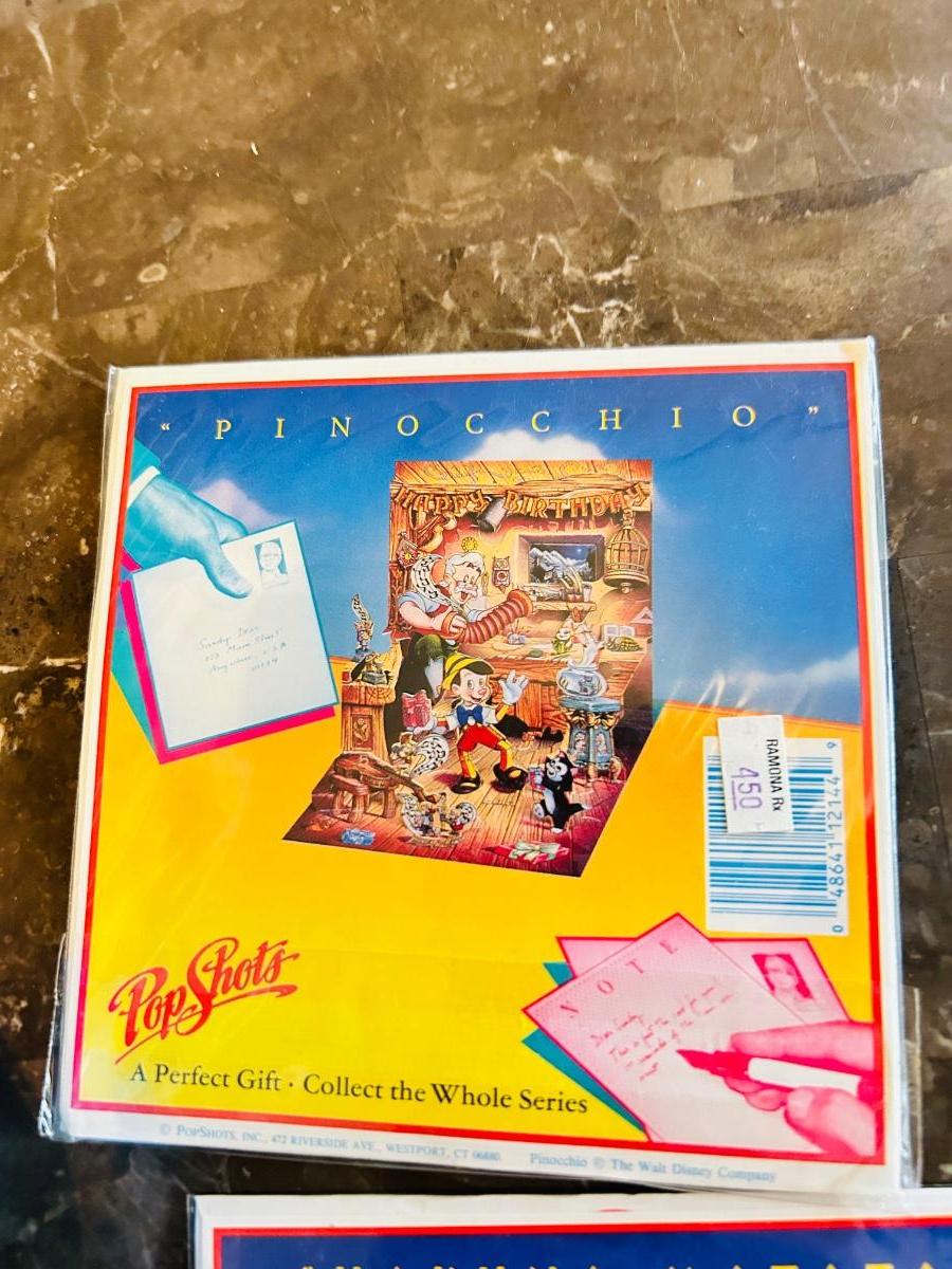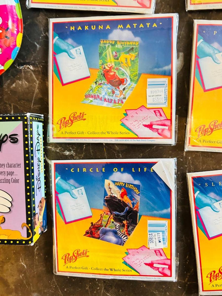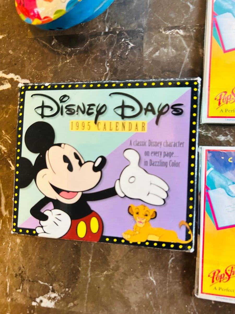 1975 MICKEY MOUSE TOP WORKS GREAT! AND ASSORTMENT OF NEAT POP UP DISNEY GREETING CARDS