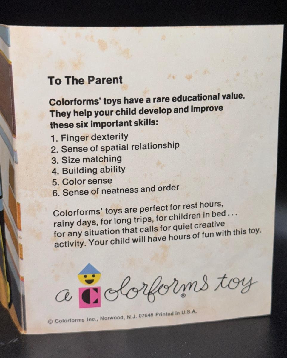 White and Yellow colorforms have never been removed from the backing.