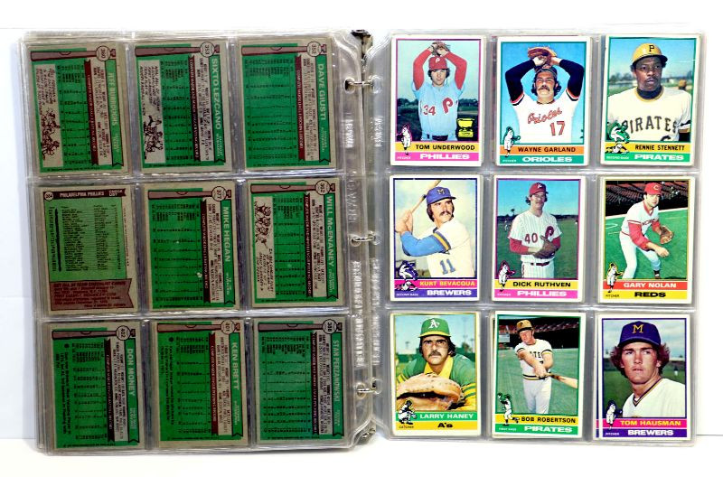Collection of baseball cards in album - 1975-1976 Topps, 198 cards in total, as seen on pictures