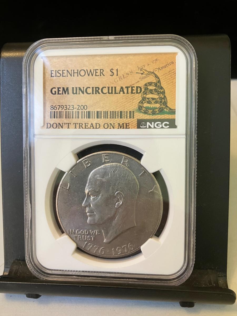 1976 Bicentennial Eisenhower Dollar - NGC Gem Uncirculated with Patriotic "Don't Tread on Me" Gadsden Flag Special Label