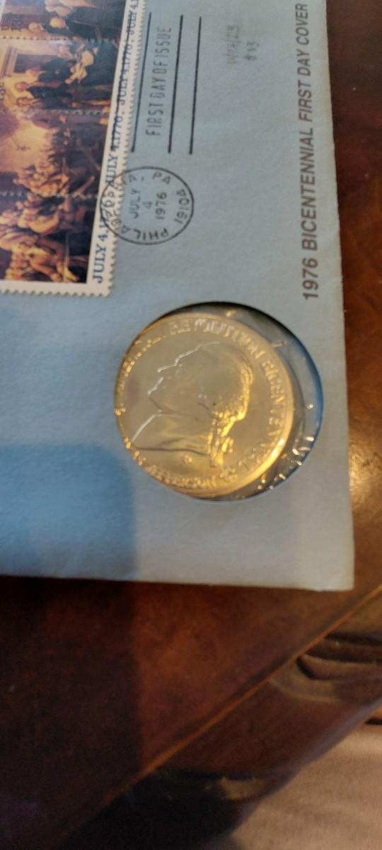 Postage stamped Philadelphia PA July 4th 1976 first day cover bicentennial coin