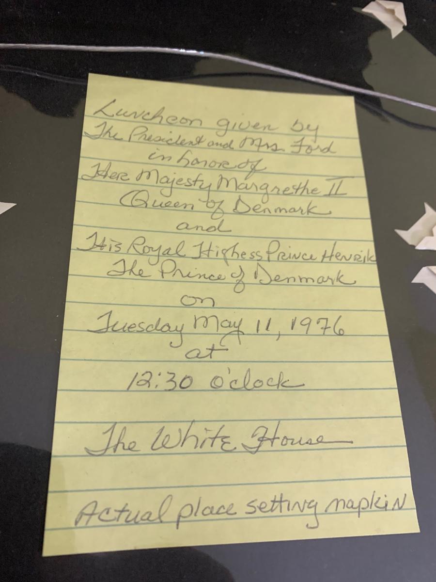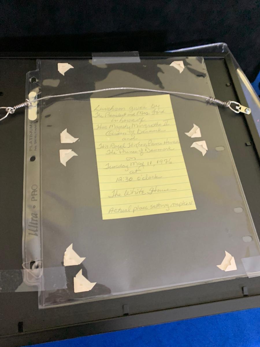 1976 King & Queen of Norway Visit Dinner - Framed Napkin