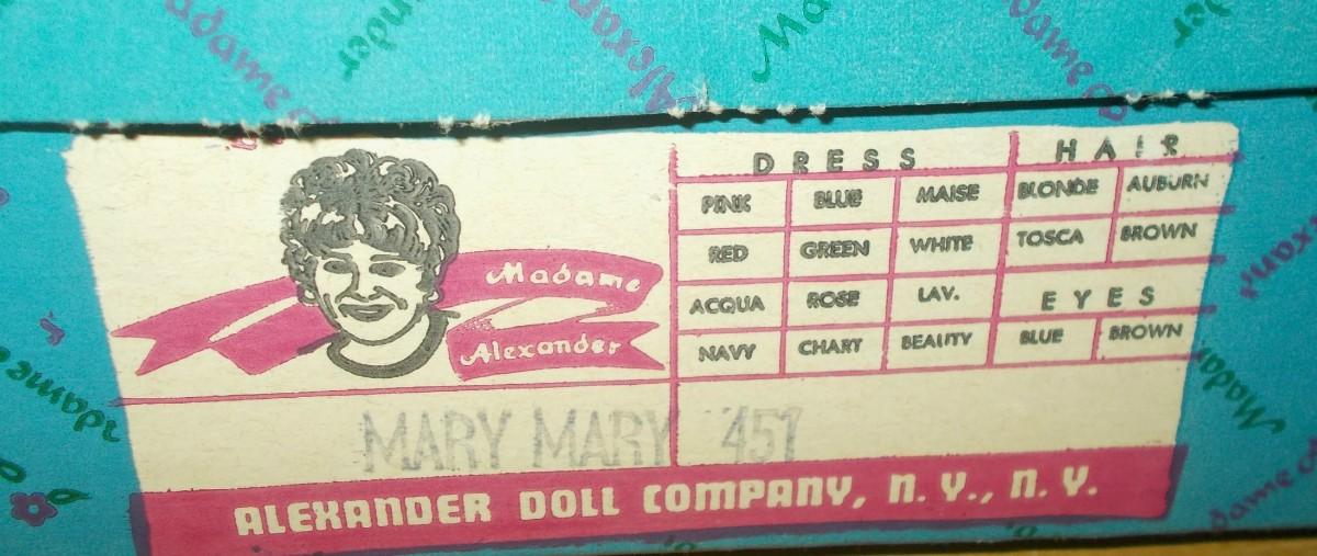 Adorable little storybook character, Mary, Mary, Quite Contrary. #451 from 1976. Never played with or displayed. Vibrant colors. Has watering can and flowers in her apron pocket. In her original box.