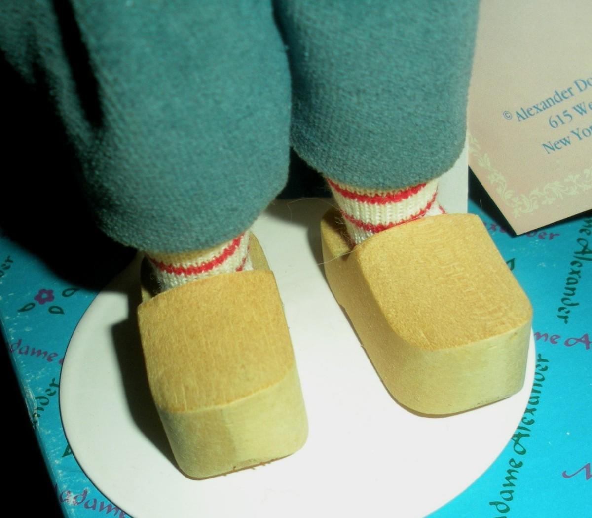 Super cute 8" boy doll. Has the traditional wooden clog shoes. In very good to excellent condition. His chin strap on his hat is a bit stretched. All else good. Cute doll in original box.
