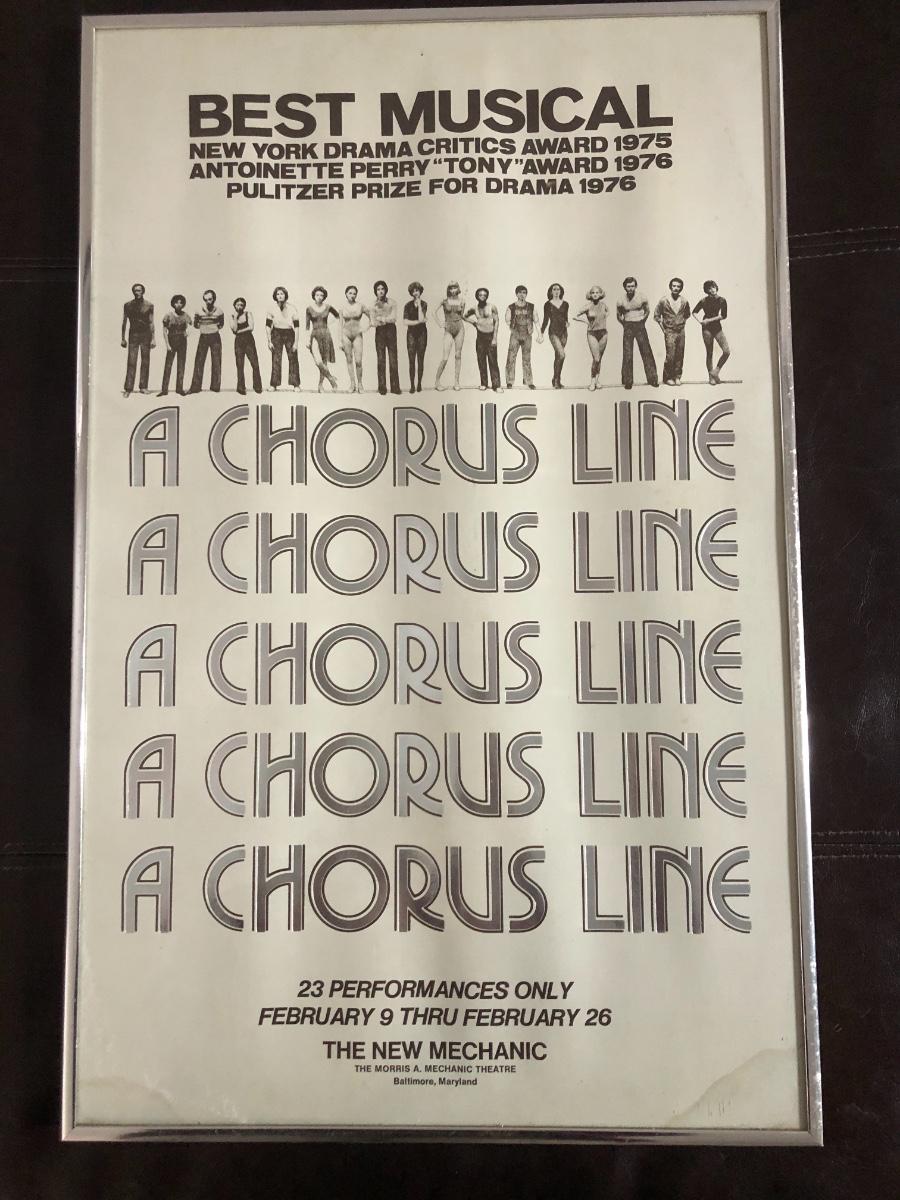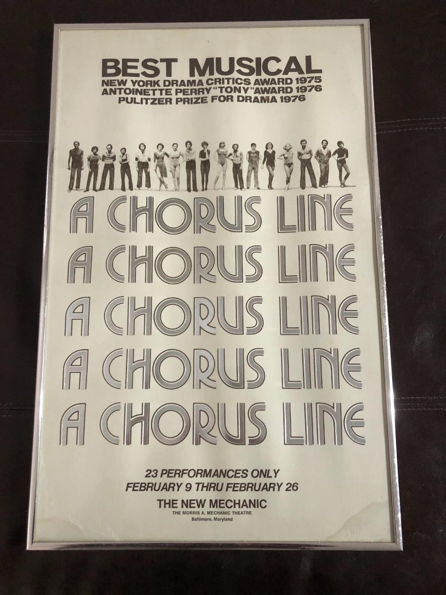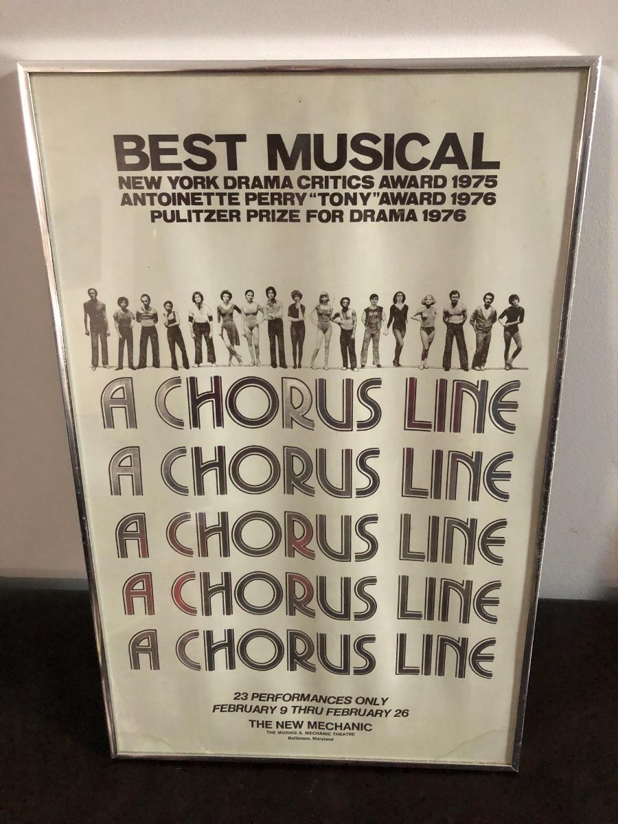 Original 1976 Theatre Window Card/Poster “˜A Chorus Line’ Best Musical -The New Mechanic, Baltimore, Maryland - Framed 14”x22”