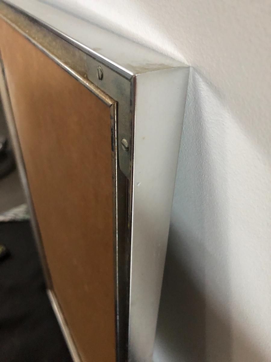 All items are sold as is, as found in the estate. Please see all photos for content, measurements and condition. This theater window card/poster has some damage in lower corners and appears to have a slight wave under the framed glass as shown in the photos.