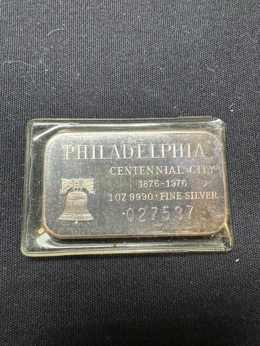 1976 PHILADELPHIA CENTENNIAL CITY 1 OUNCE .999 FINE SILVER BAR