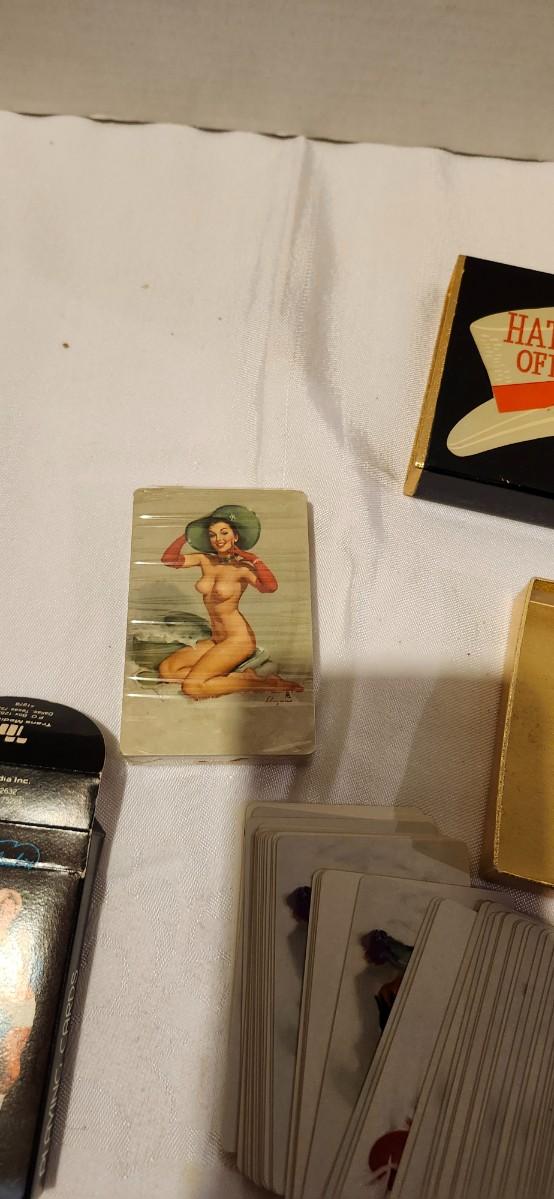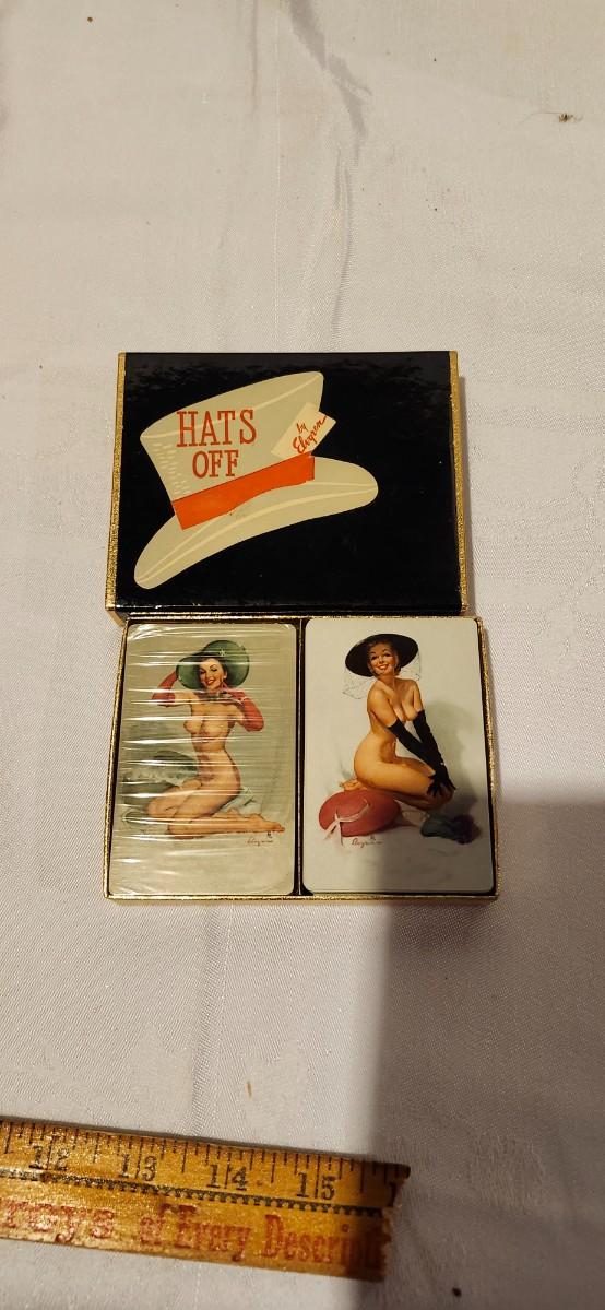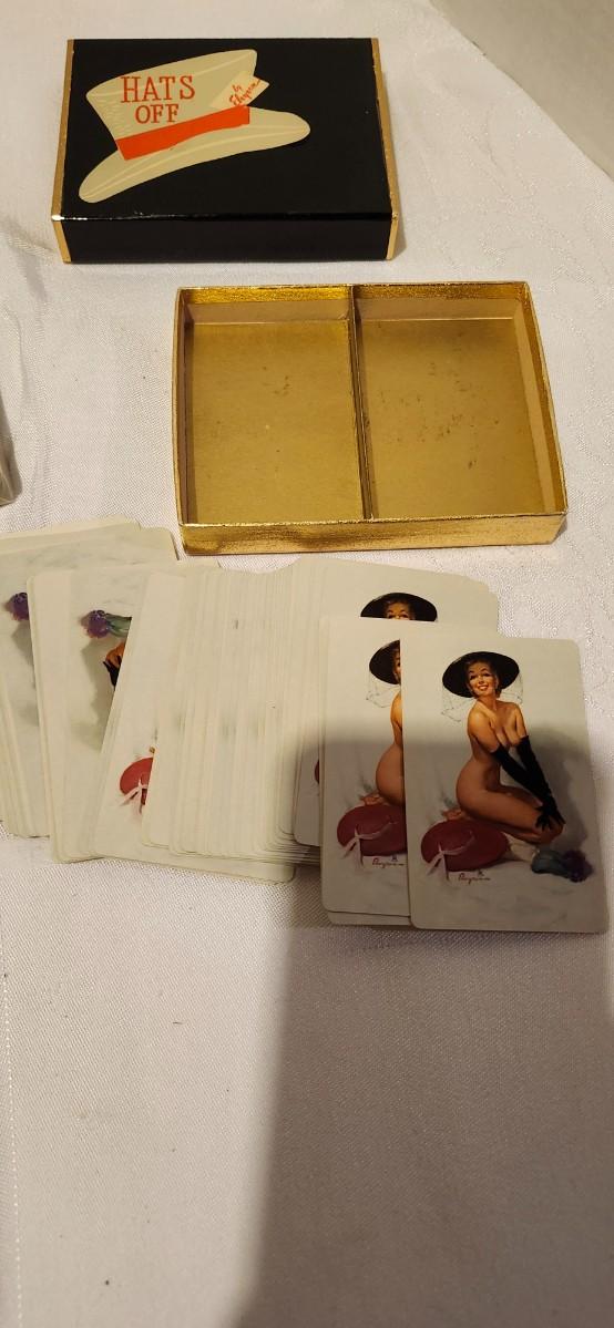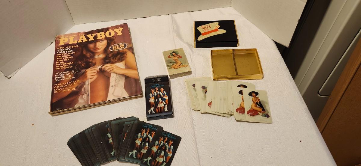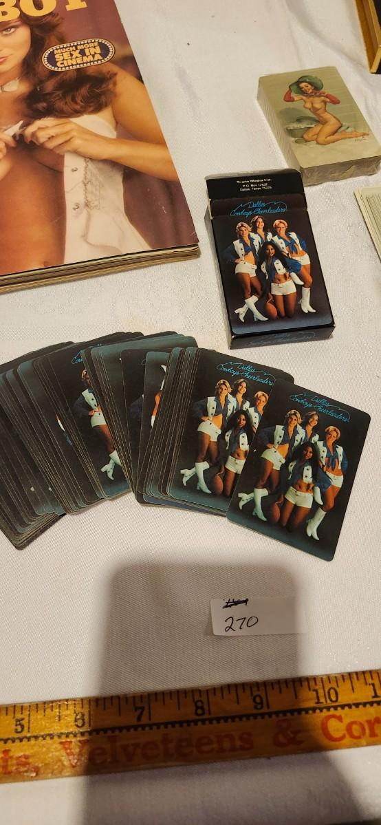 1976 Playboy, Hats off 1950s risque playing cards, and cowboy Cheerleaders card
