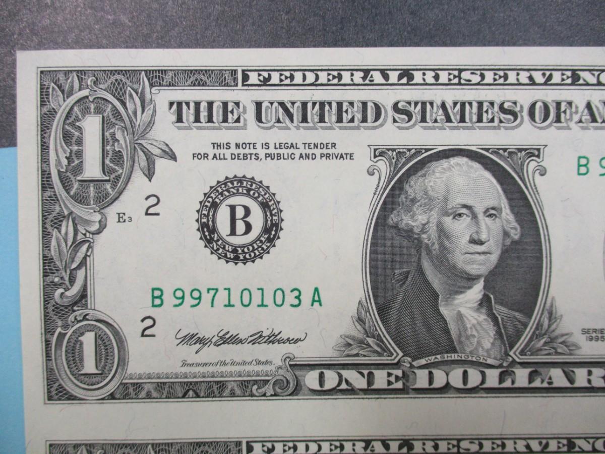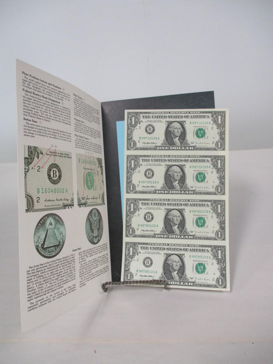 1976 "Sheet of 4" One Dollar $1 Bills Bureau of Engraving and Printing