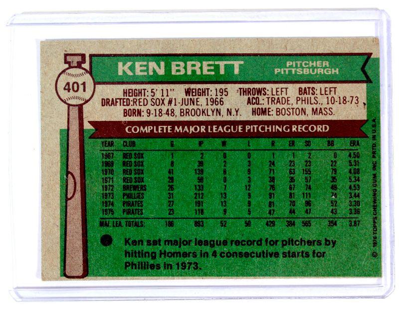 1976 Topps #401 KEN BRETT Baseball Card - Pirates Pittsburgh