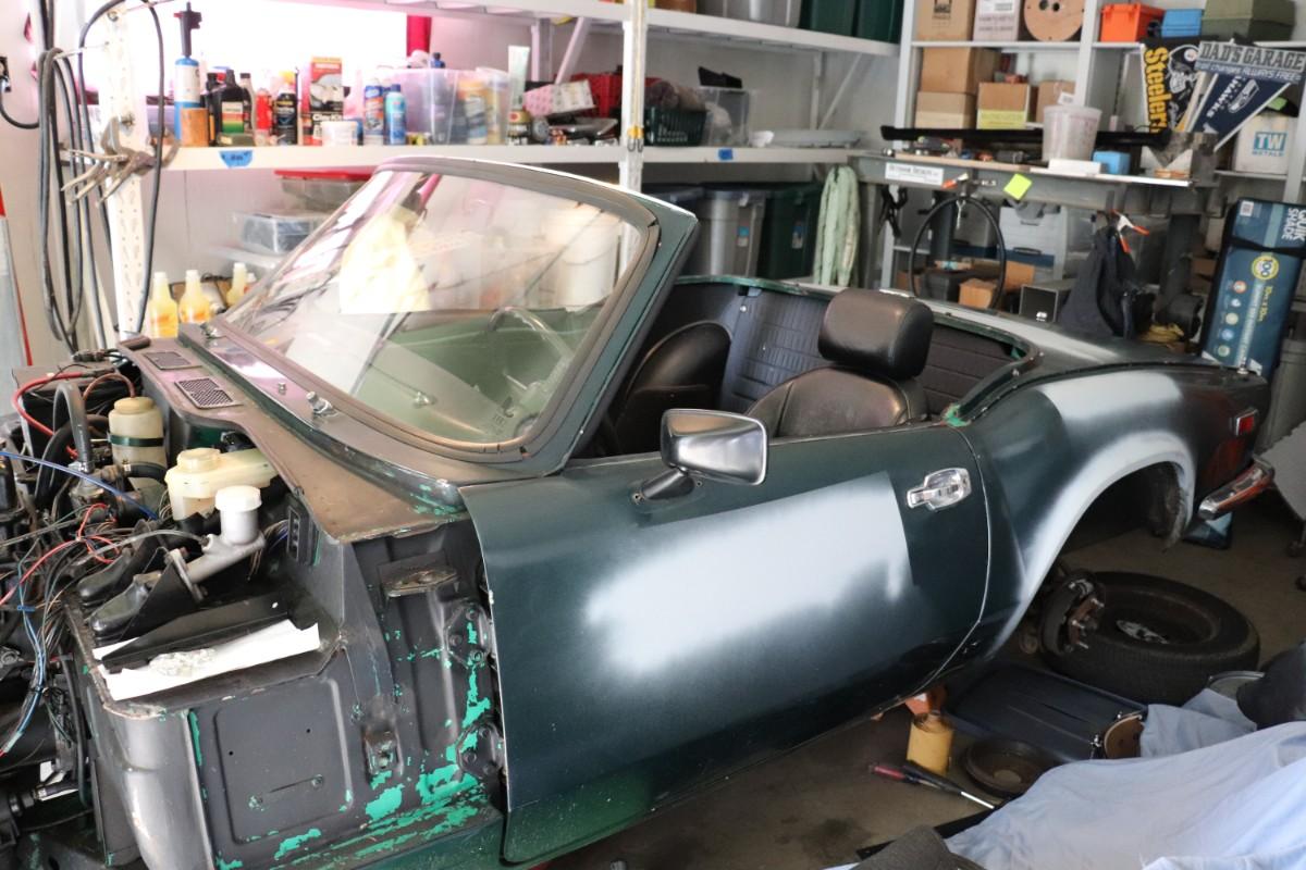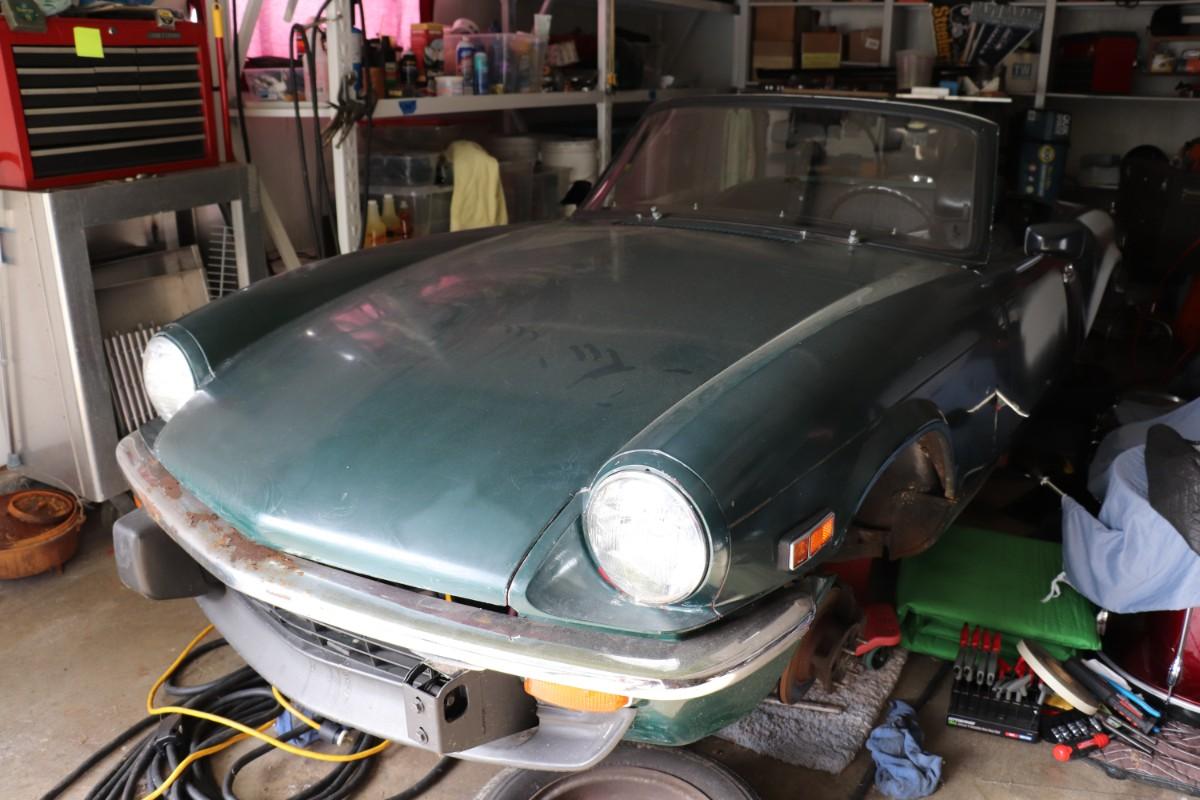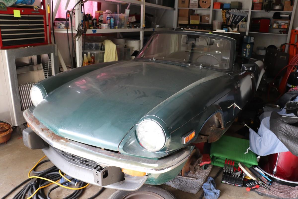 Wonderful project car! 1976 Triumph Spitfire waiting for restoration to be complete! Due to potential risks of damage from old fuel etc, we did not attempt to start any vehicles. Pre-bidding inspection is encouraged. Car has previous vehicle certificate of ownership - new buyer will need to obtain a title. Vin number FM44305U.