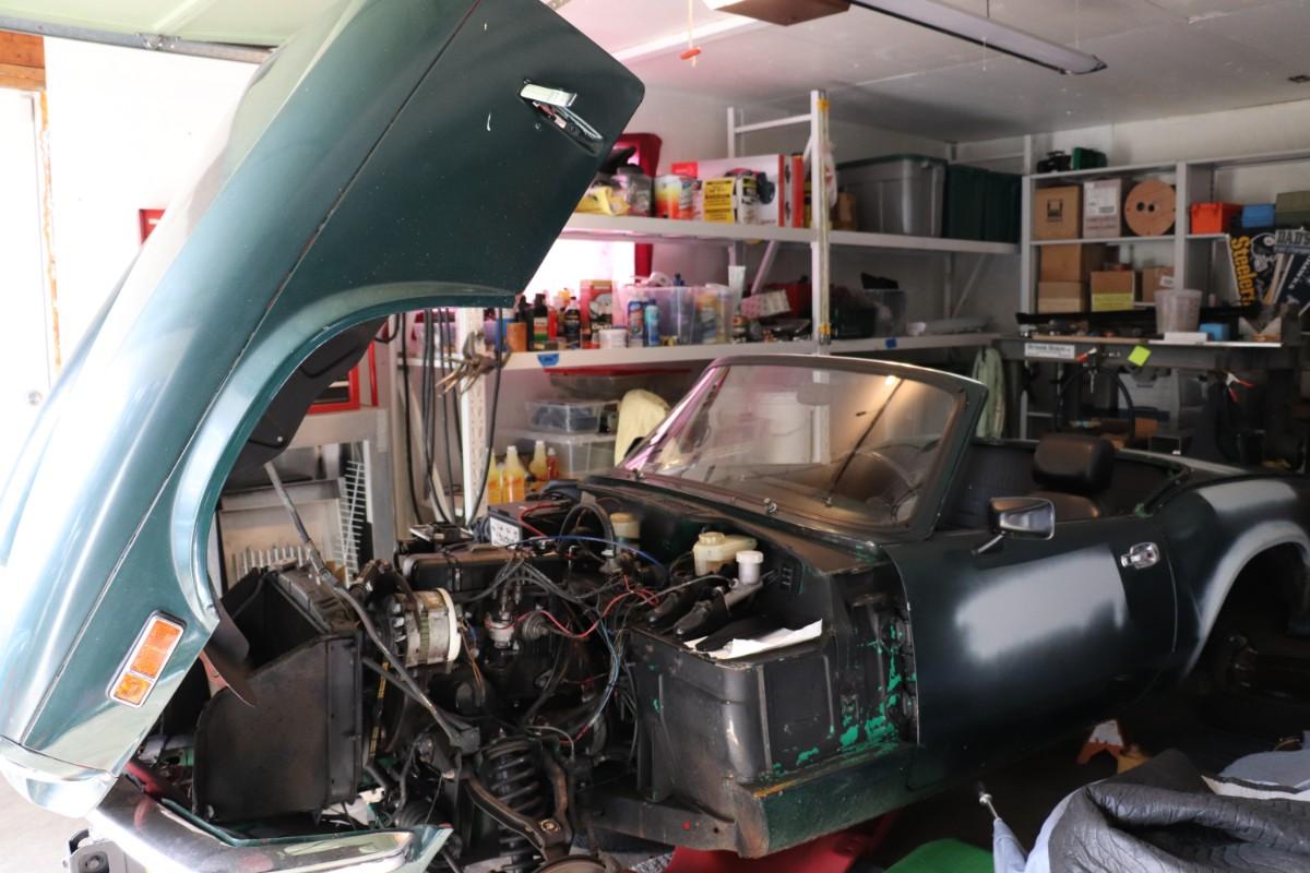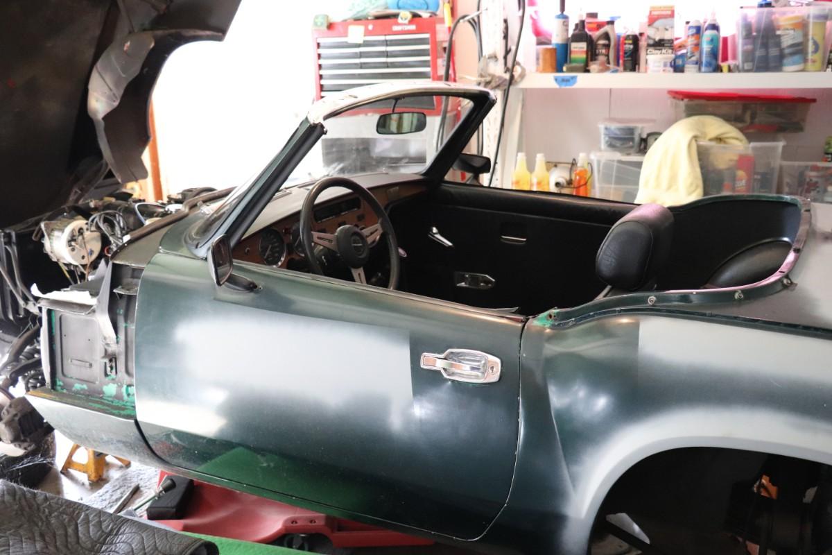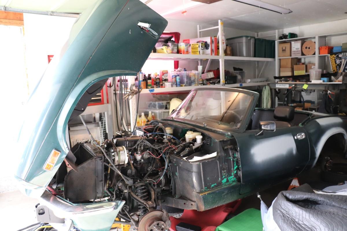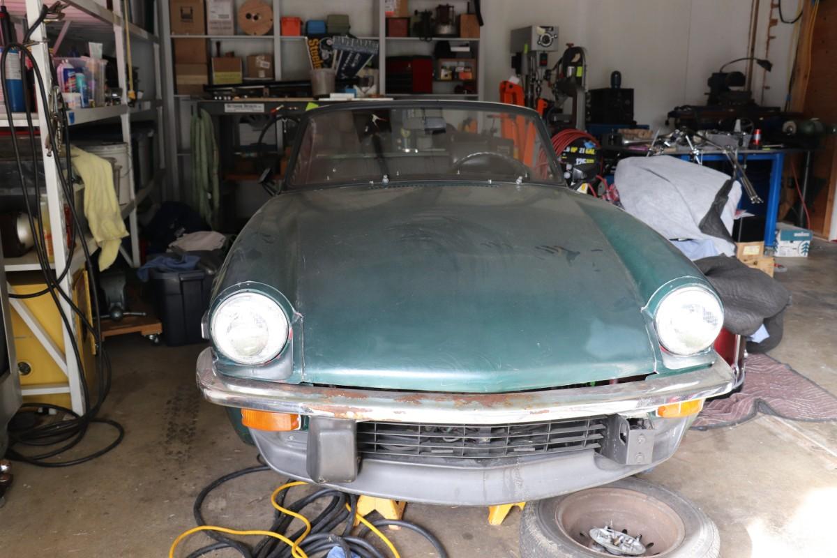 Wonderful project car! 1976 Triumph Spitfire waiting for restoration to be complete! Due to potential risks of damage from old fuel etc, we did not attempt to start any vehicles. Pre-bidding inspection is encouraged. Car has previous vehicle certificate of ownership - new buyer will need to obtain a title. Vin number FM44305U.