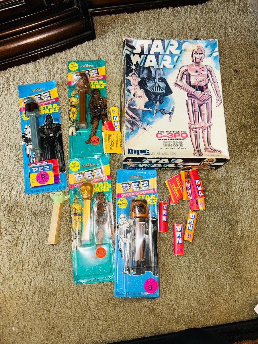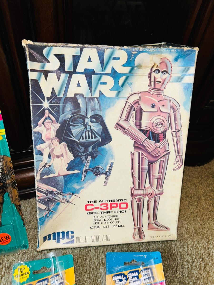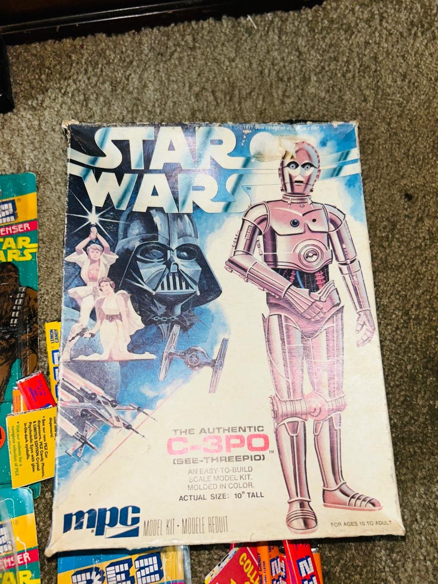1977 AUTHENTIC C3PO 10” SCALE MODEL KIT, AND VTG STAR WARS PEZ DISPENSERS
