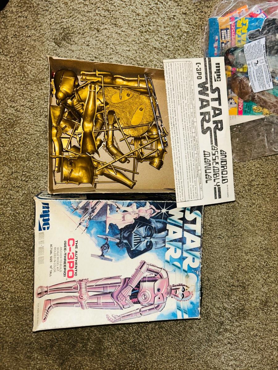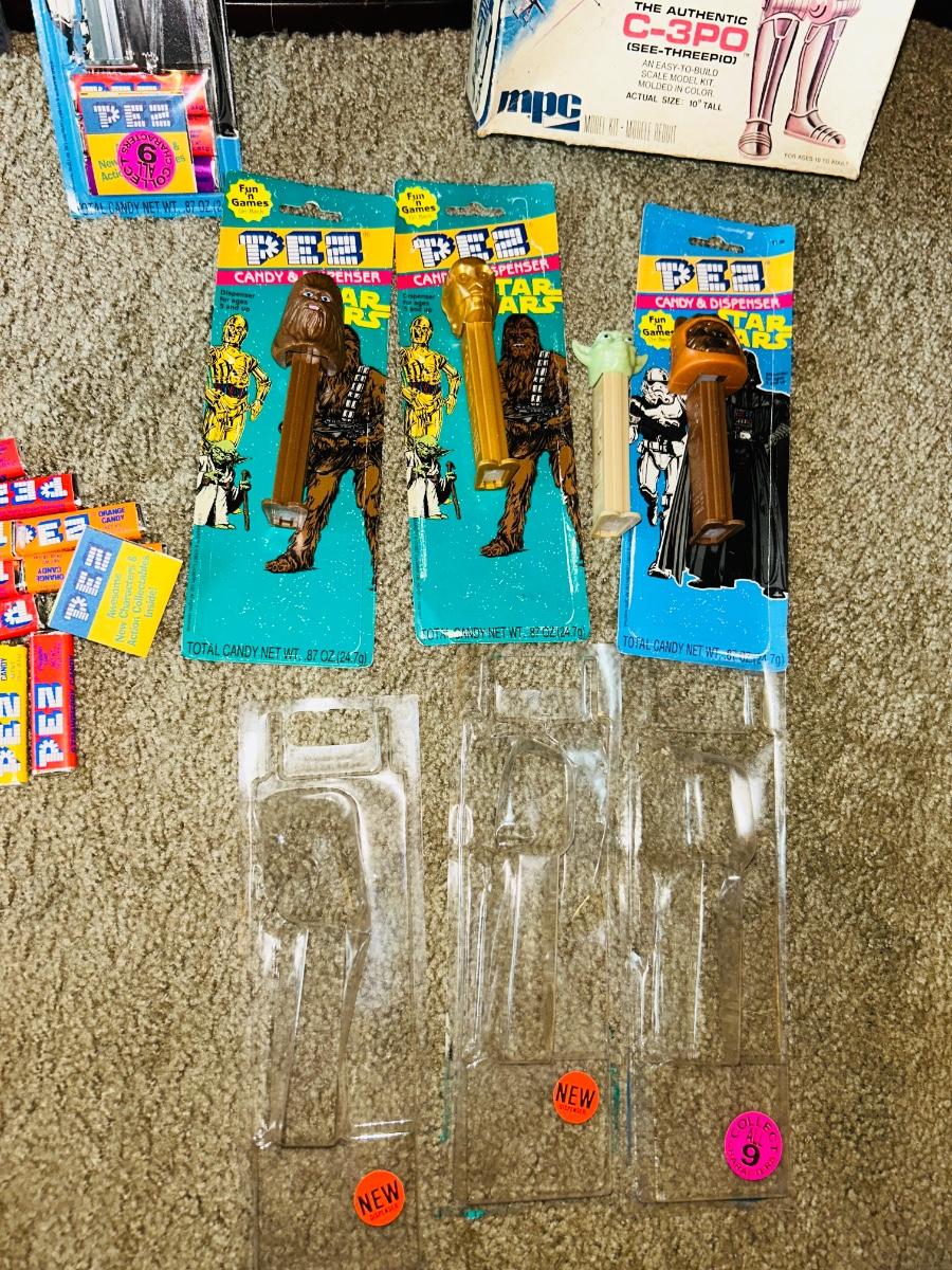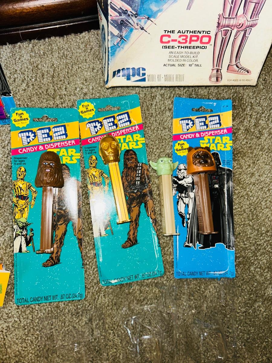 1977 AUTHENTIC C3PO 10” SCALE MODEL KIT, AND VTG STAR WARS PEZ DISPENSERS