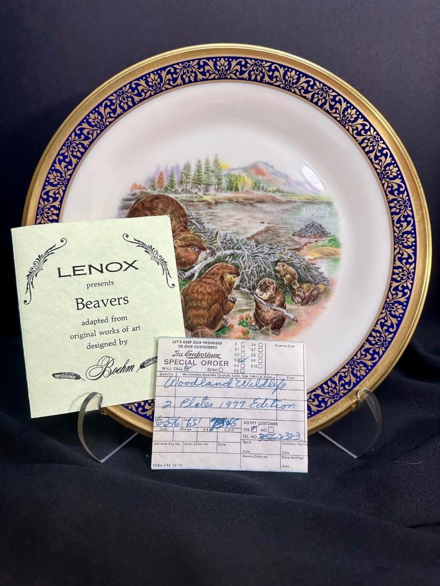 Vintage Lenox limited edition designer plate from the Boehm woodland wildlife collection series. Bone china trimmed in 24k gold, this beautiful collector’s piece is based on the artist Edward Marshall Boehm. Original box and certificate, 10 ¾”