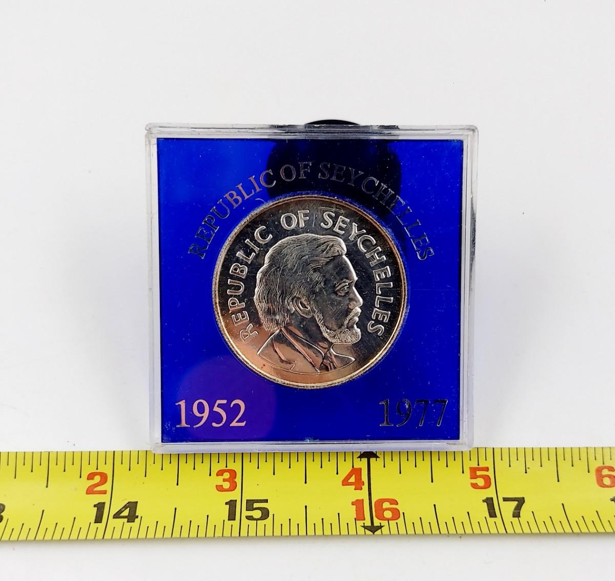 1977 SEYCHELLES SILVER PROOF COIN - QUEEN ELIZABETH SILVER JUBILEE